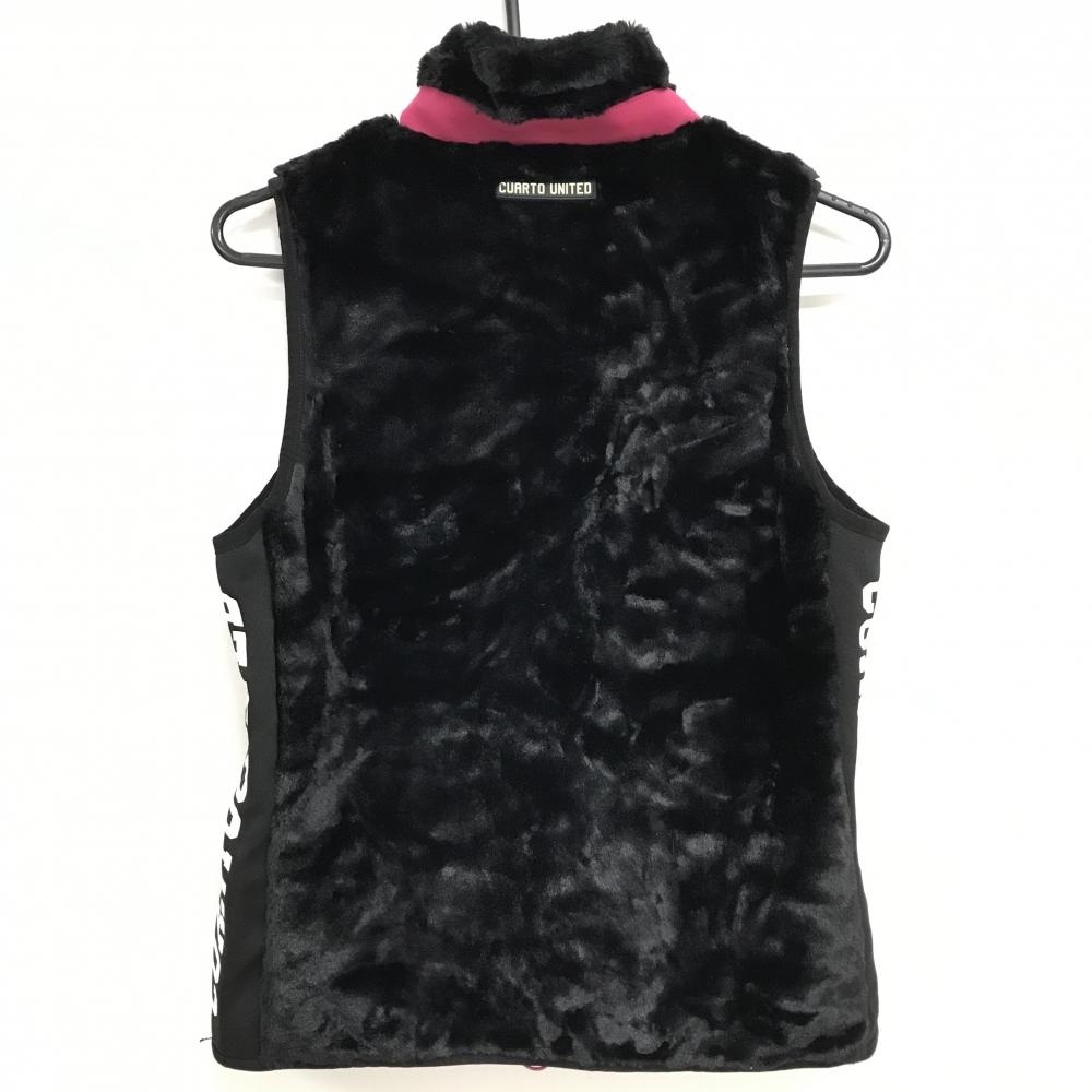 【美品】クアルトユナイテッド アウターボアベスト 黒×ピンク サイド切替ロゴ レディース M ゴルフウェア CUARTO UNITED