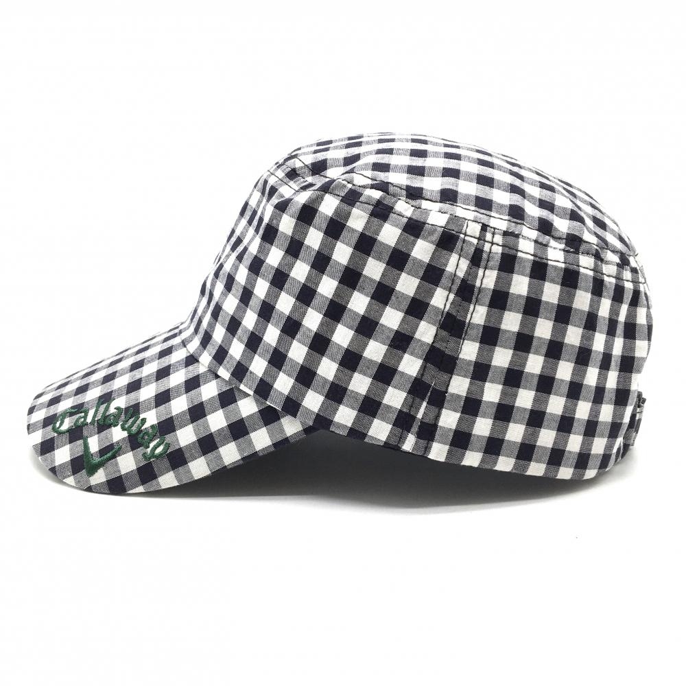 【超美品】キャロウェイ キャップ 白×黒 チェック柄 ロゴ刺しゅう フリーサイズ(55-57cm) ゴルフウェア Callaway
