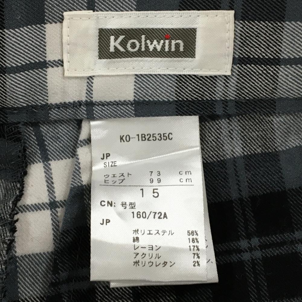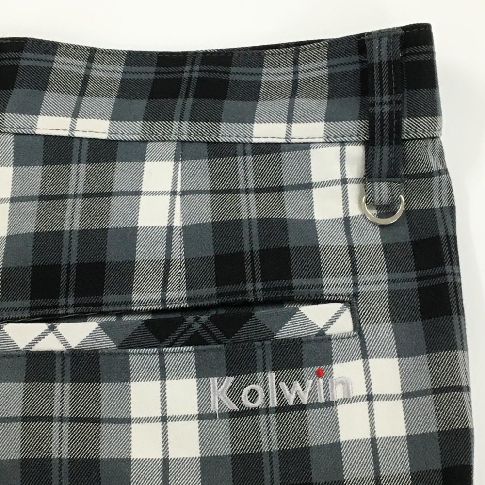 【超美品】コルウィン パンツ グレー×白 チェック柄 バックロゴ刺しゅう レディース 15 ゴルフウェア Kolwin