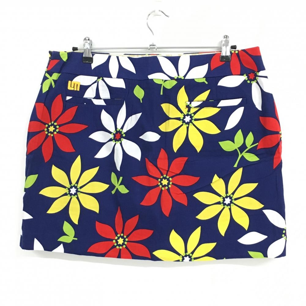 【美品】ラウドマウス スカート ネイビー×レッド 花柄 ロゴ刺しゅう レディース US-14 ゴルフウェア 大きいサイズ LOUDMOUTH