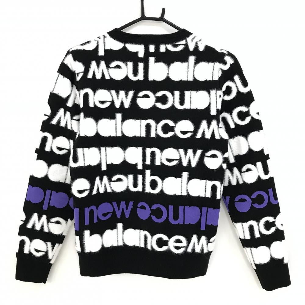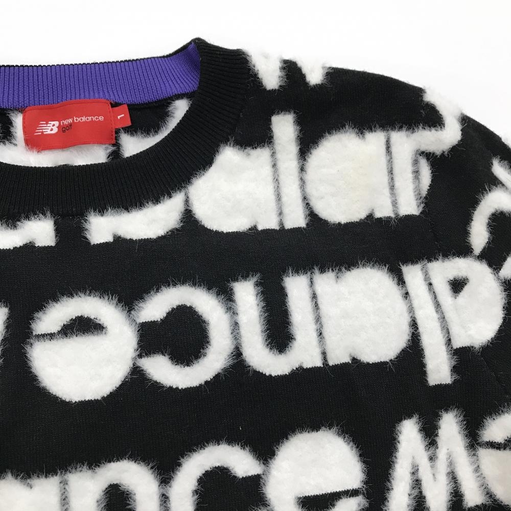 【美品】ニューバランスゴルフ セーター 黒×白 ロゴ総柄 ニット レディース 1(M) ゴルフウェア 2023年モデル New Balance
