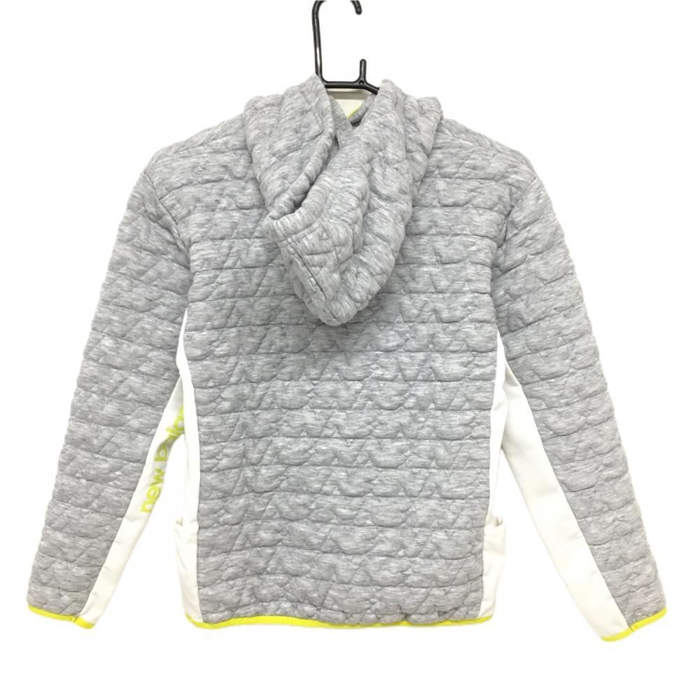 【美品】ニューバランスゴルフ パーカー 杢ライトグレー×白 一部裏起毛 キルティング 切替 レディース 0(S) ゴルフウェア New Balance
