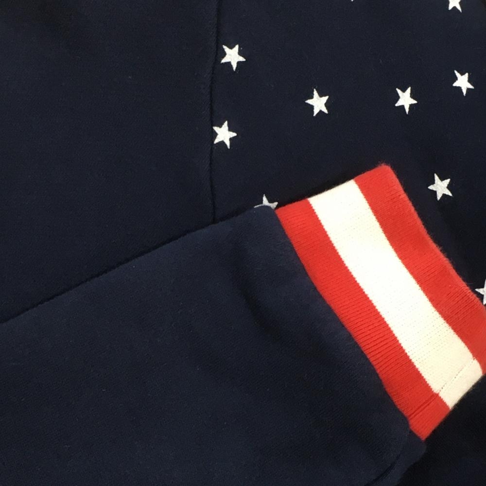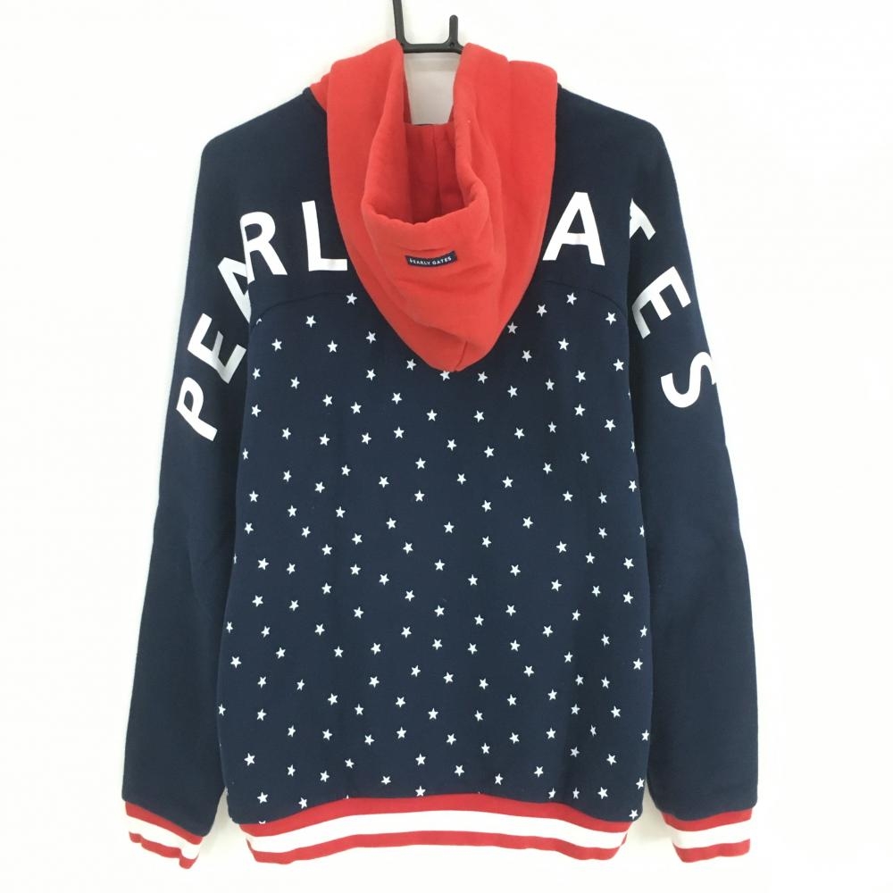 パーリーゲイツ ジップパーカー ネイビー×レッド 身頃星柄 裏起毛 ブルゾン メンズ 6(XL) ゴルフウェア PEARLY GATES