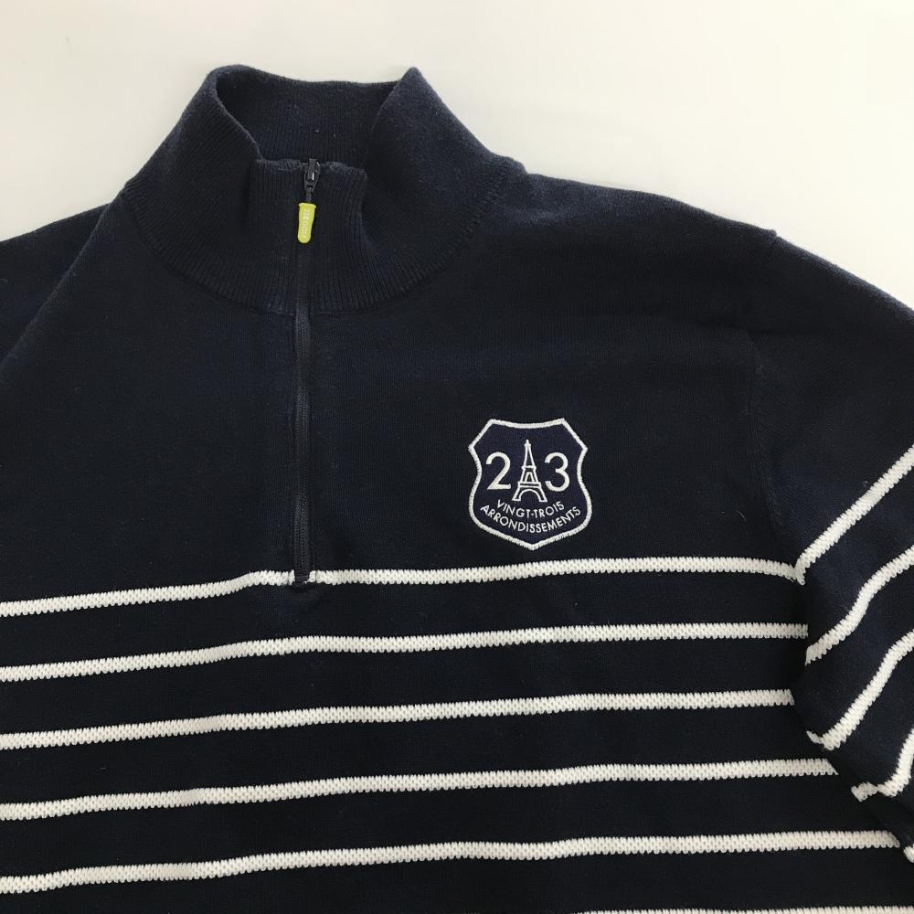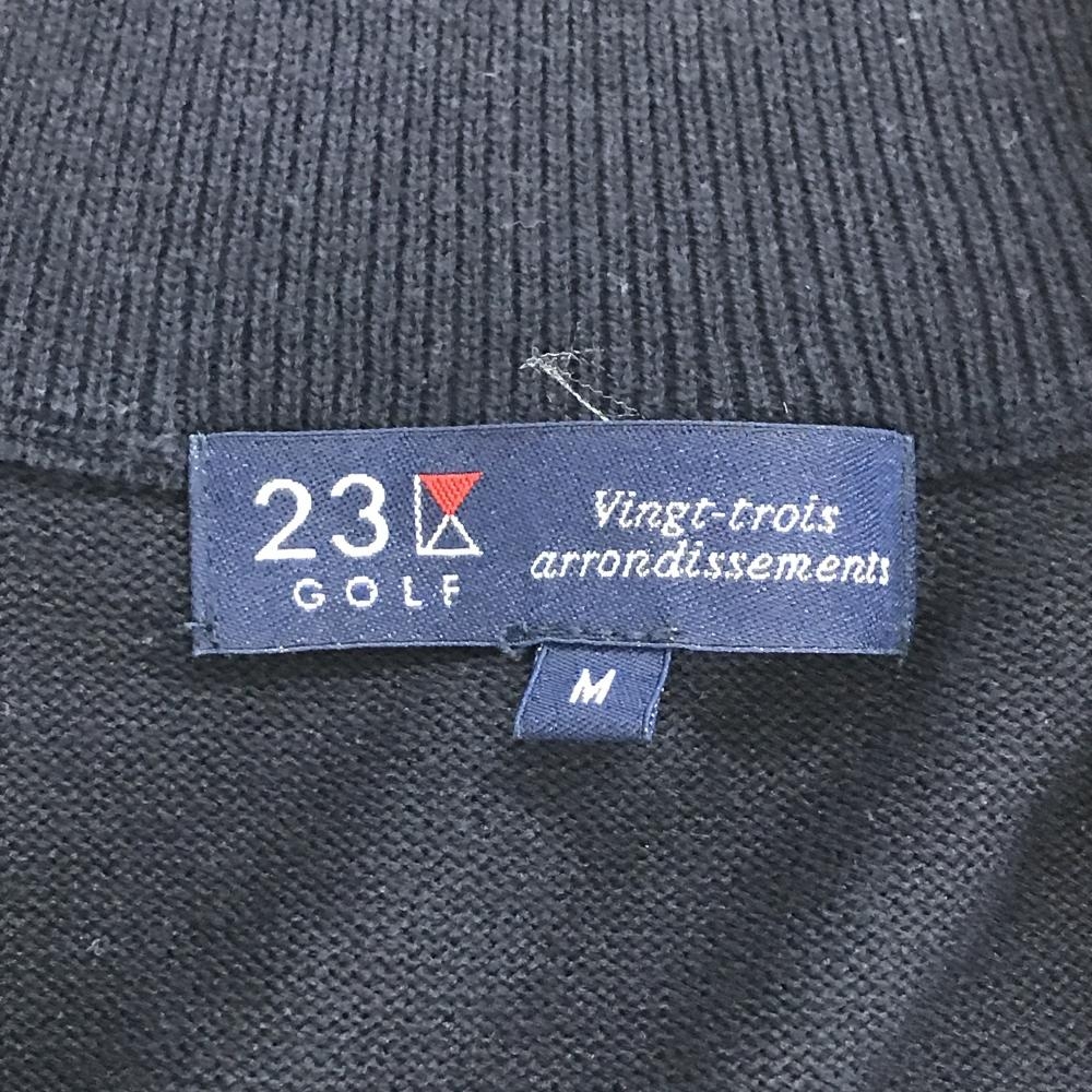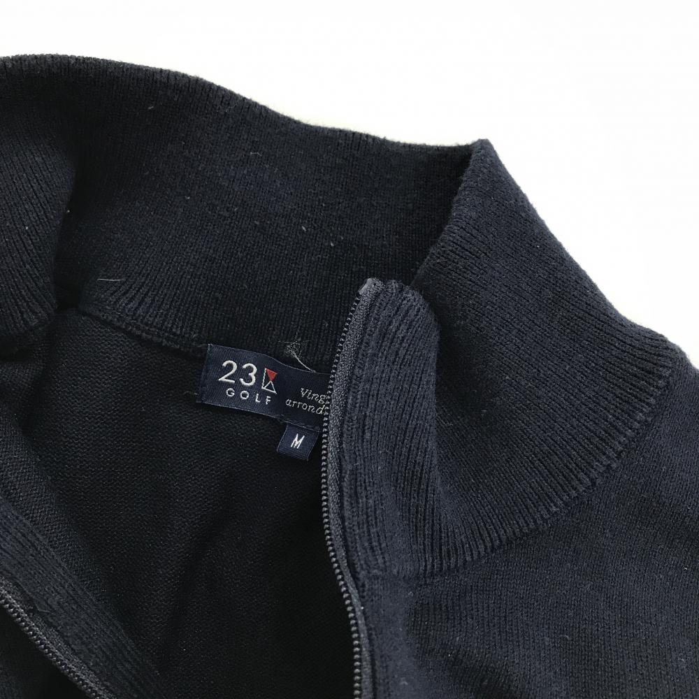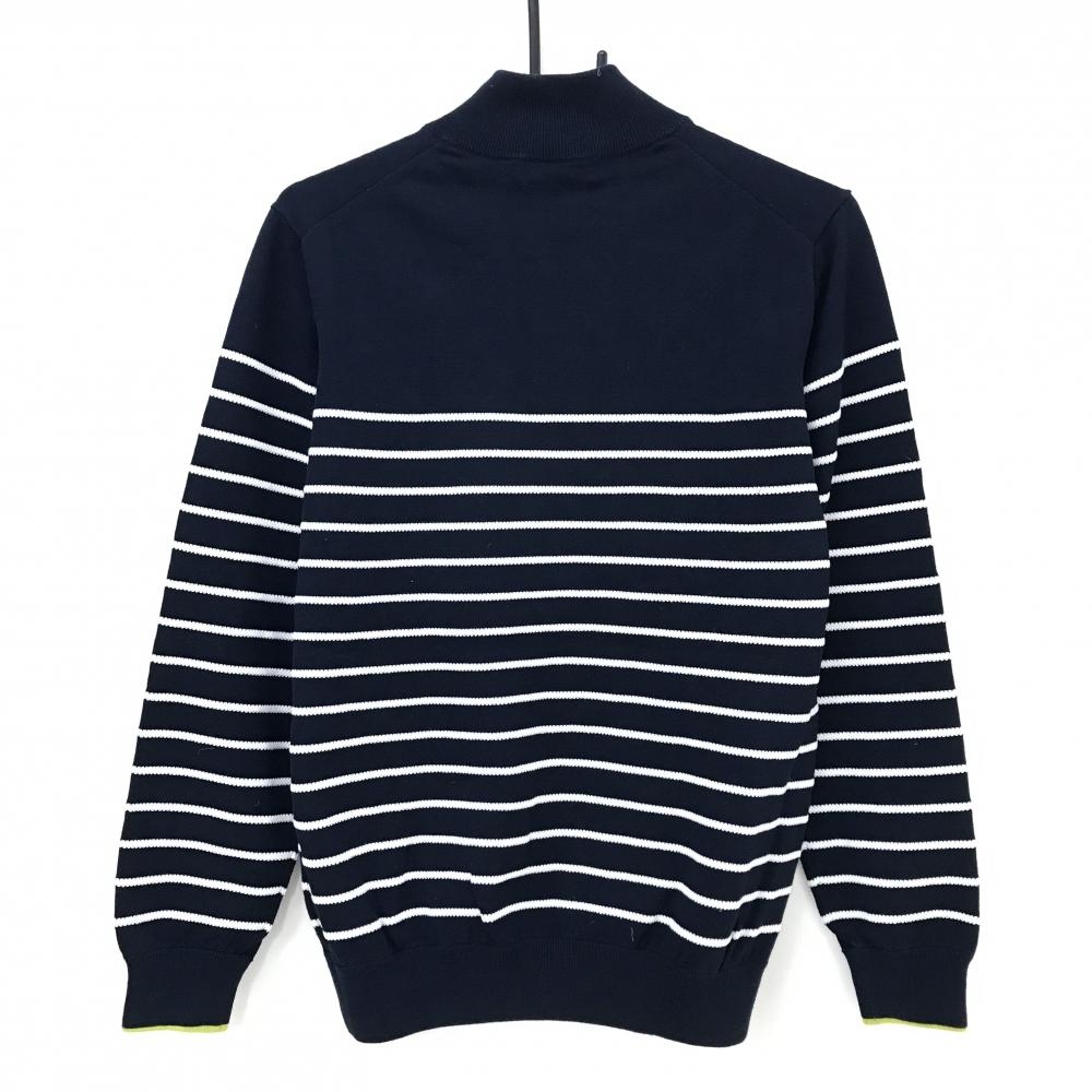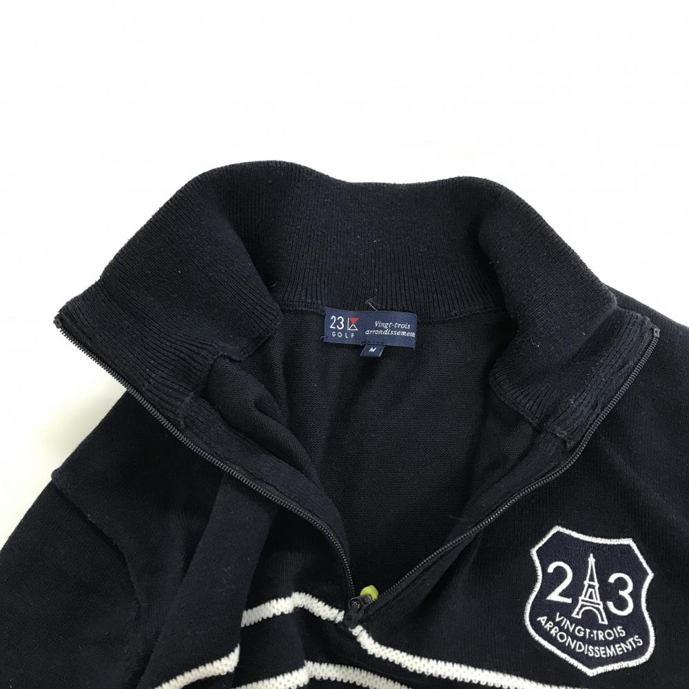 23区ゴルフ ハイネックセーター ネイビー×白 ボーダー ロゴ刺しゅう ニット ハーフジップ メンズ M ゴルフウェア 23区