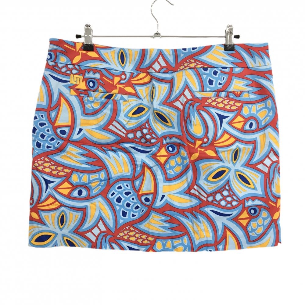 【超美品】ラウドマウス スカート ブルー×レッド ニワトリ総柄 レディース US-14 ゴルフウェア 大きいサイズ LOUDMOUTH