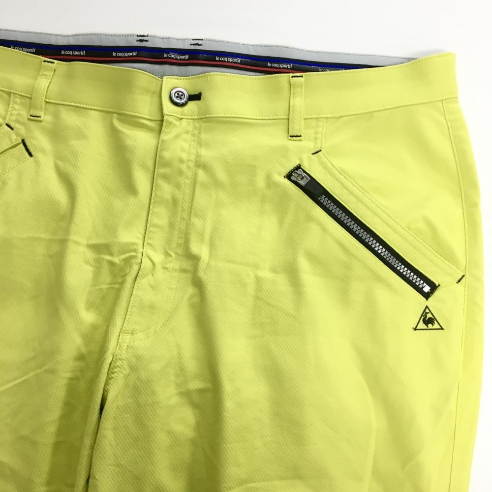 【美品】ルコックゴルフ パンツ イエロー 地模様 ジップポケット ストレッチ メンズ 105 ゴルフウェア 大きいサイズ le coq sportif