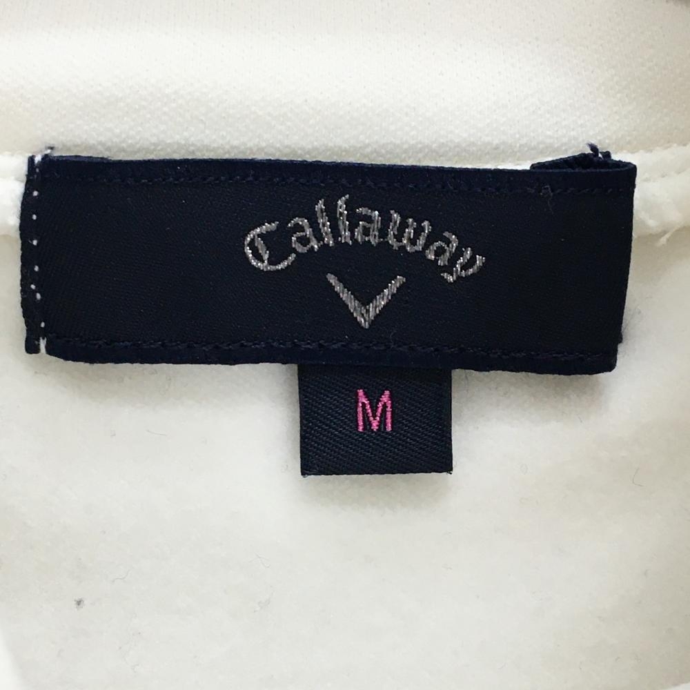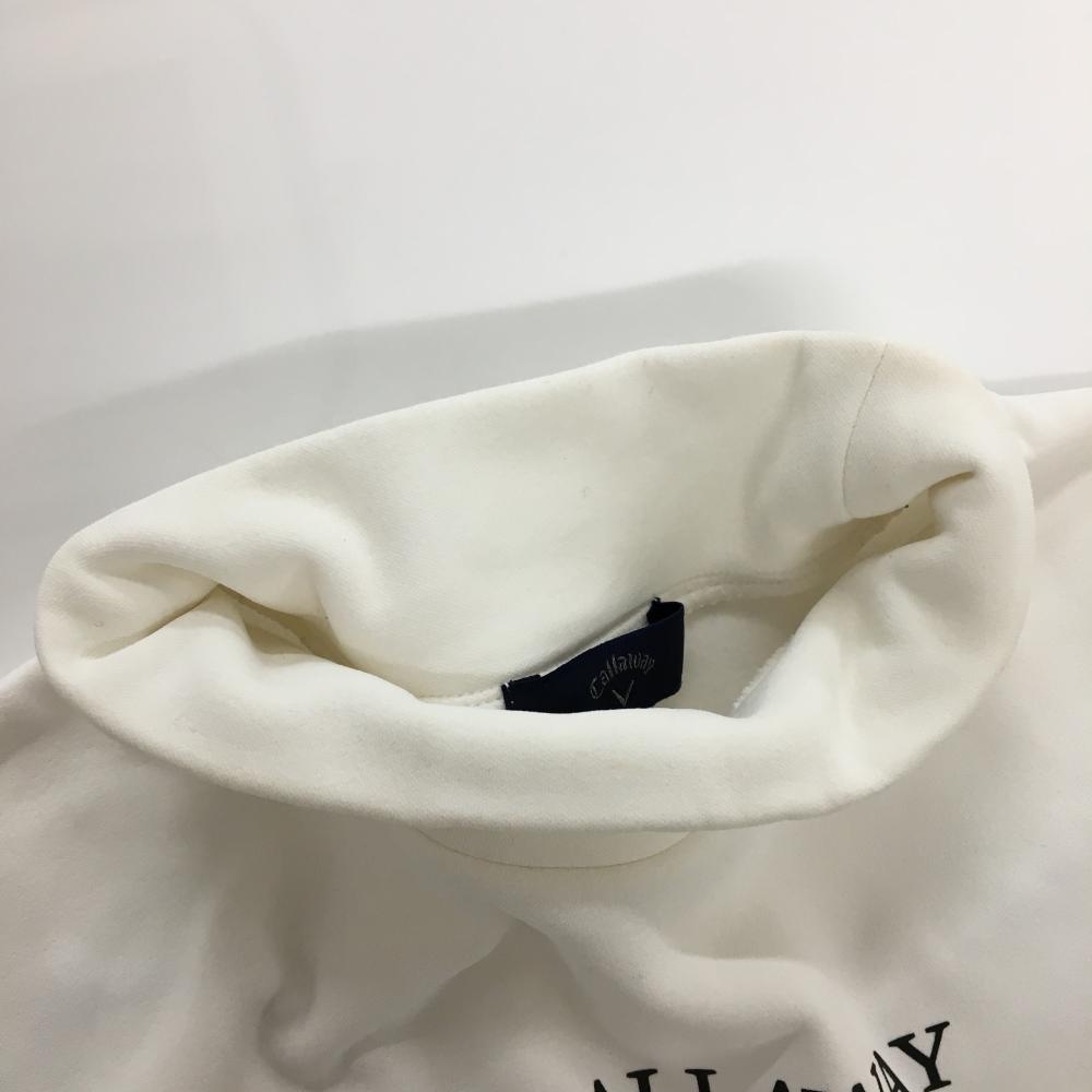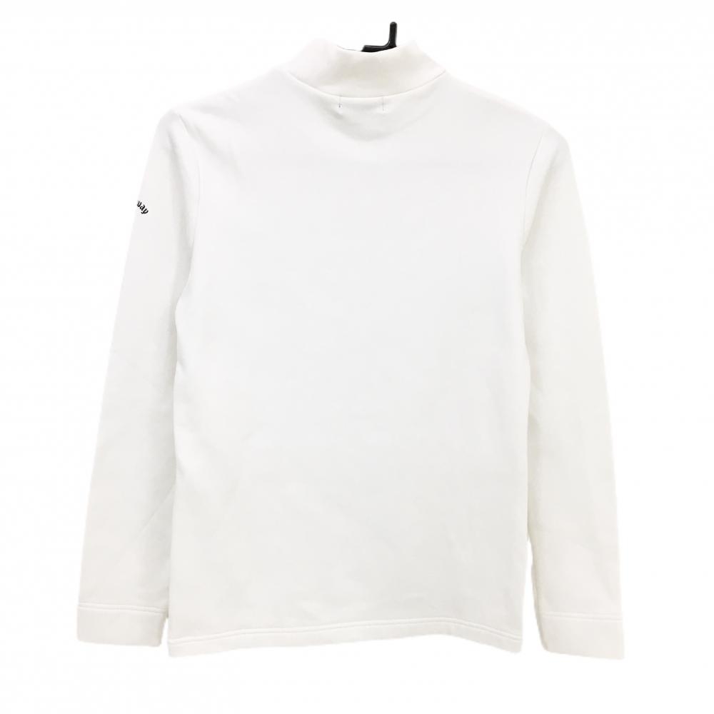 キャロウェイ 長袖ハイネックシャツ 白×黒 フロントロゴ 裏微起毛 レディース M ゴルフウェア Callaway
