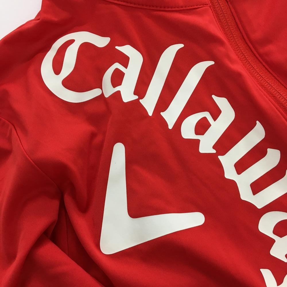 【超美品】キャロウェイ ジャケットブルゾン レッド×白 ダブルジップ 裾ライン レディース LL ゴルフウェア Callaway