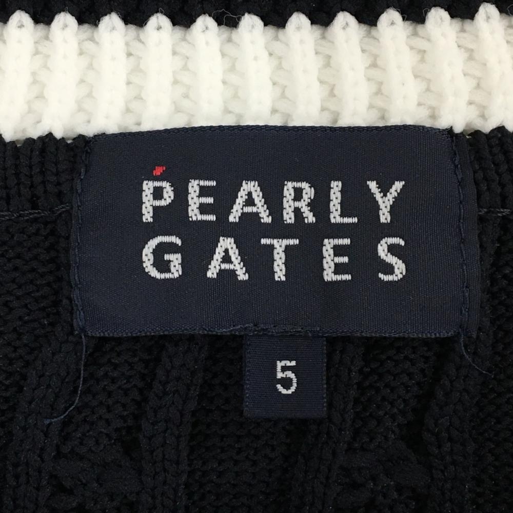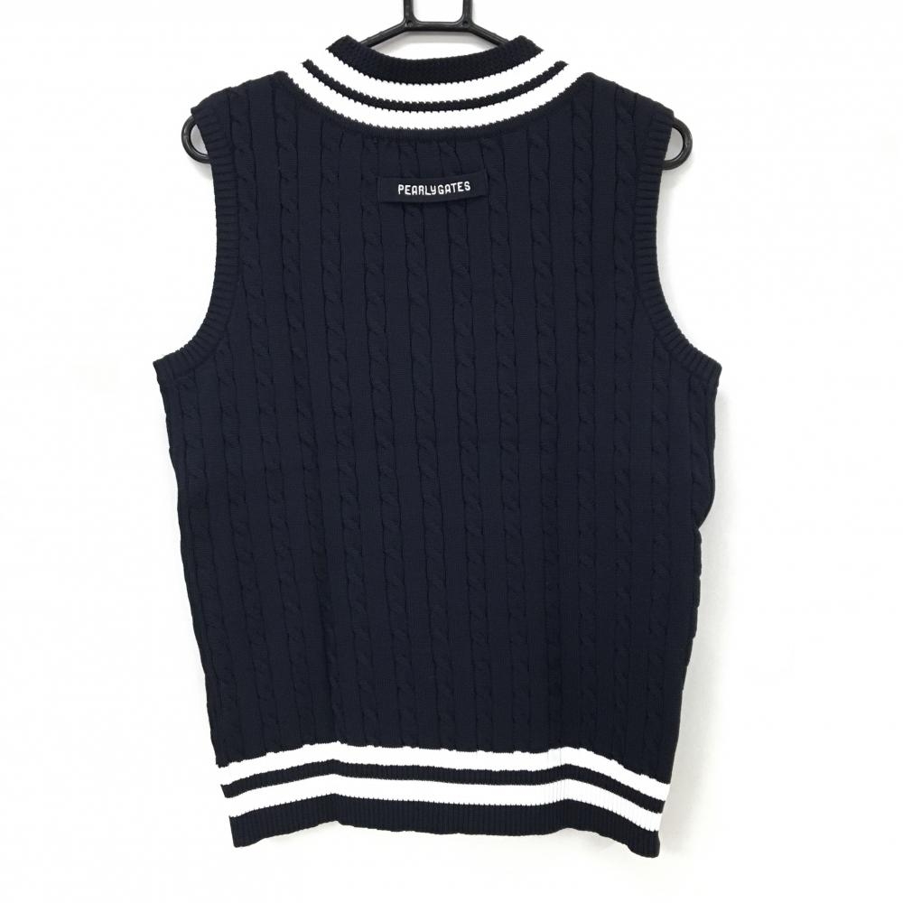 【超美品】パーリーゲイツ ニットベスト ネイビー×白 Vネック ケーブル編み メンズ 5(L) ゴルフウェア PEARLY GATES