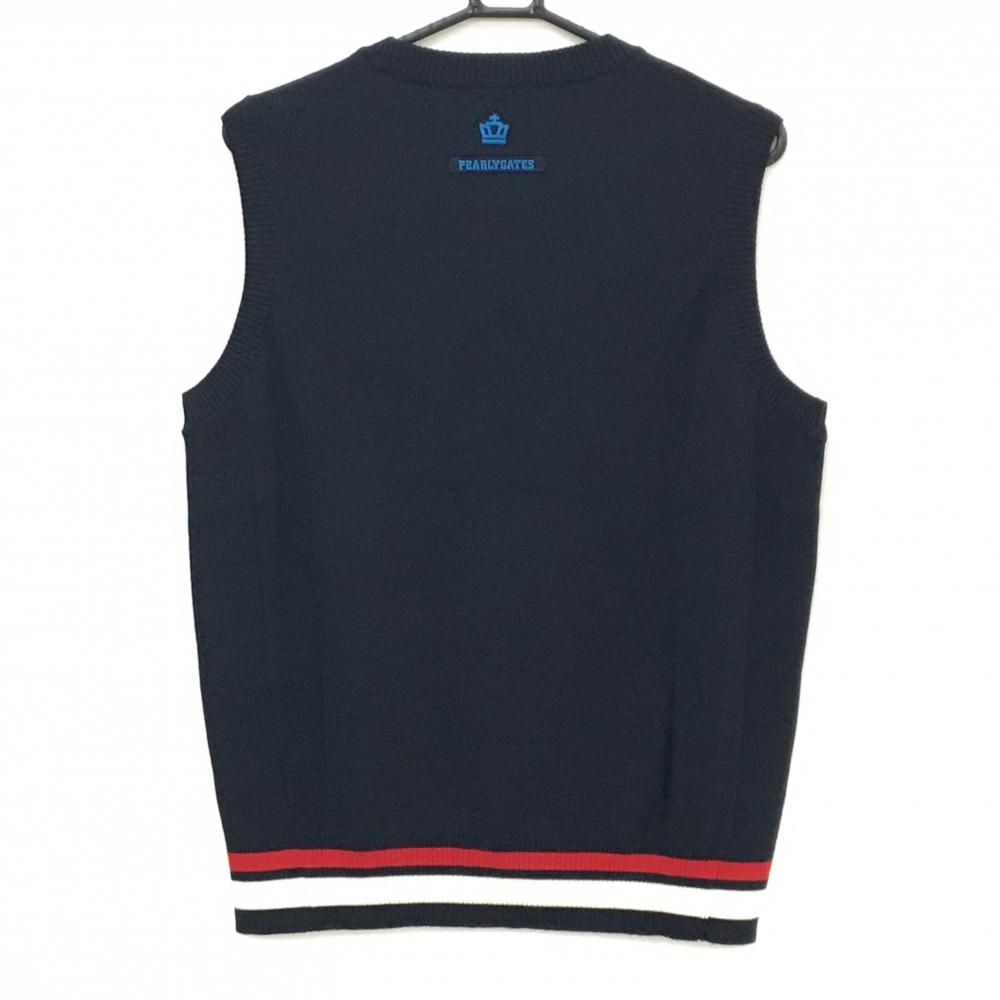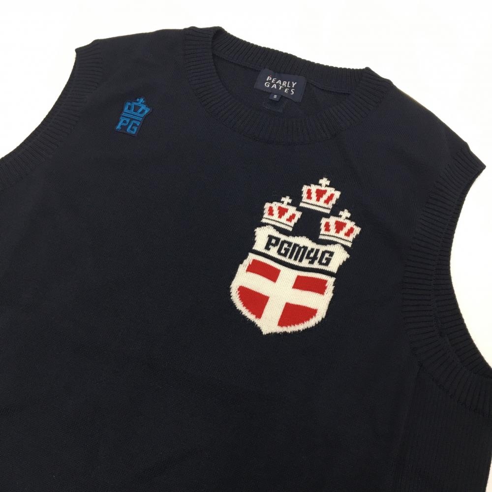 【超美品】パーリーゲイツ ニットベスト ネイビー×白 王冠 メンズ 5(L) ゴルフウェア PEARLY GATES