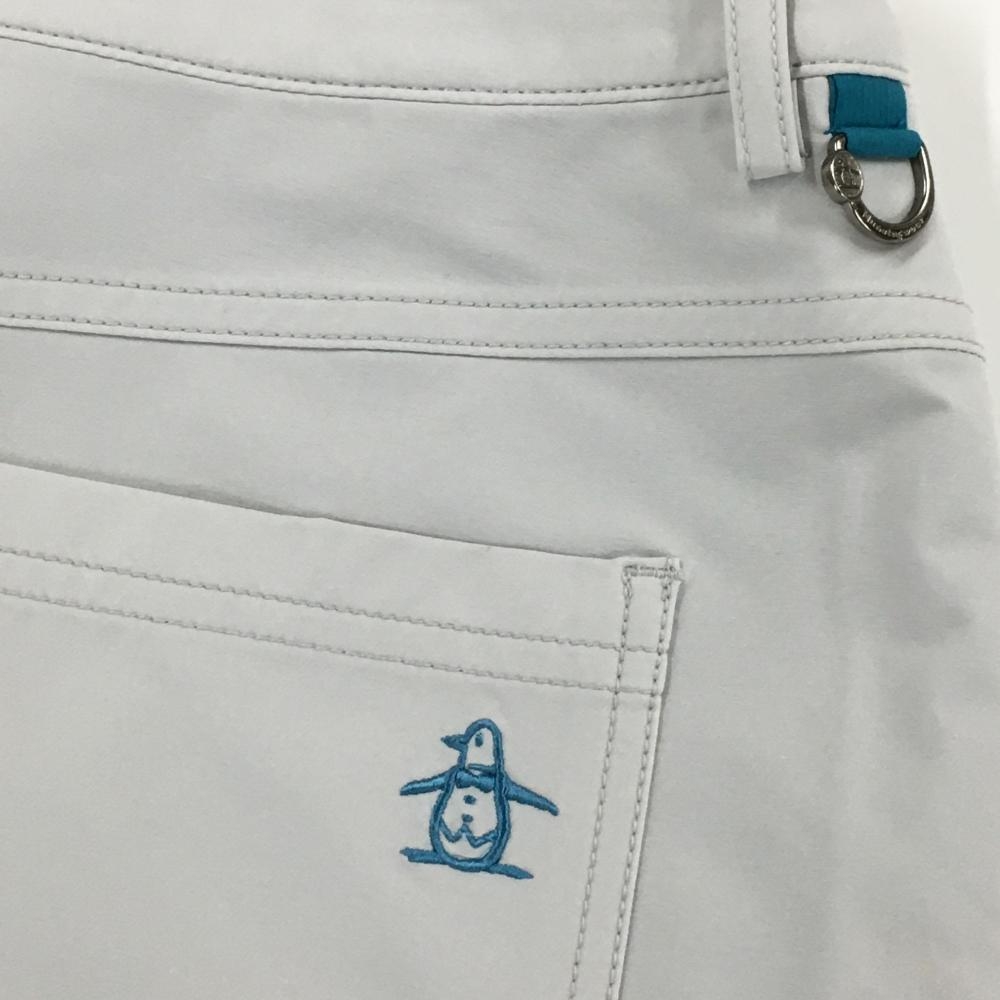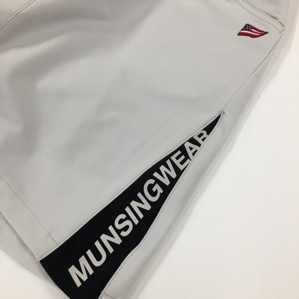 【美品】マンシングウェア スカート ライトグレー×ライトブルー 星条旗ワッペン ストレッチ レディース 9 ゴルフウェア Munsingwear