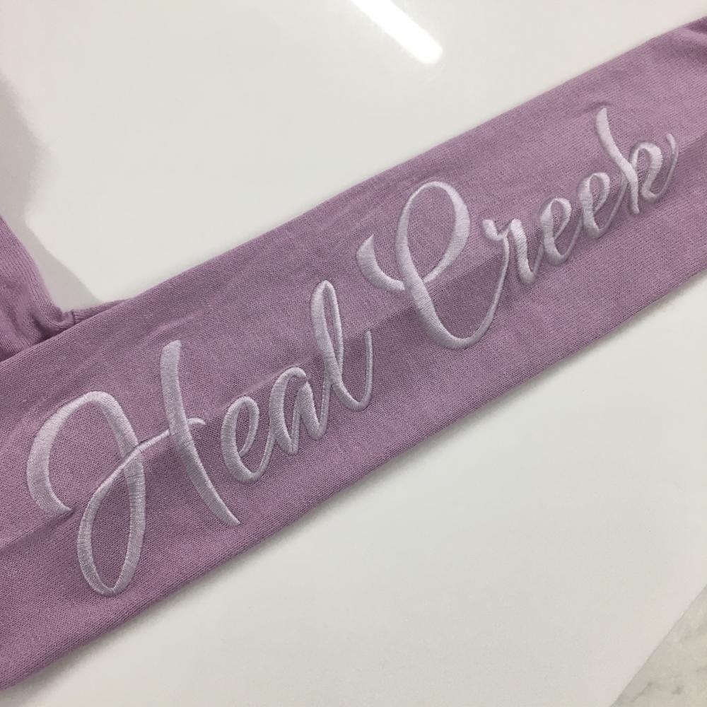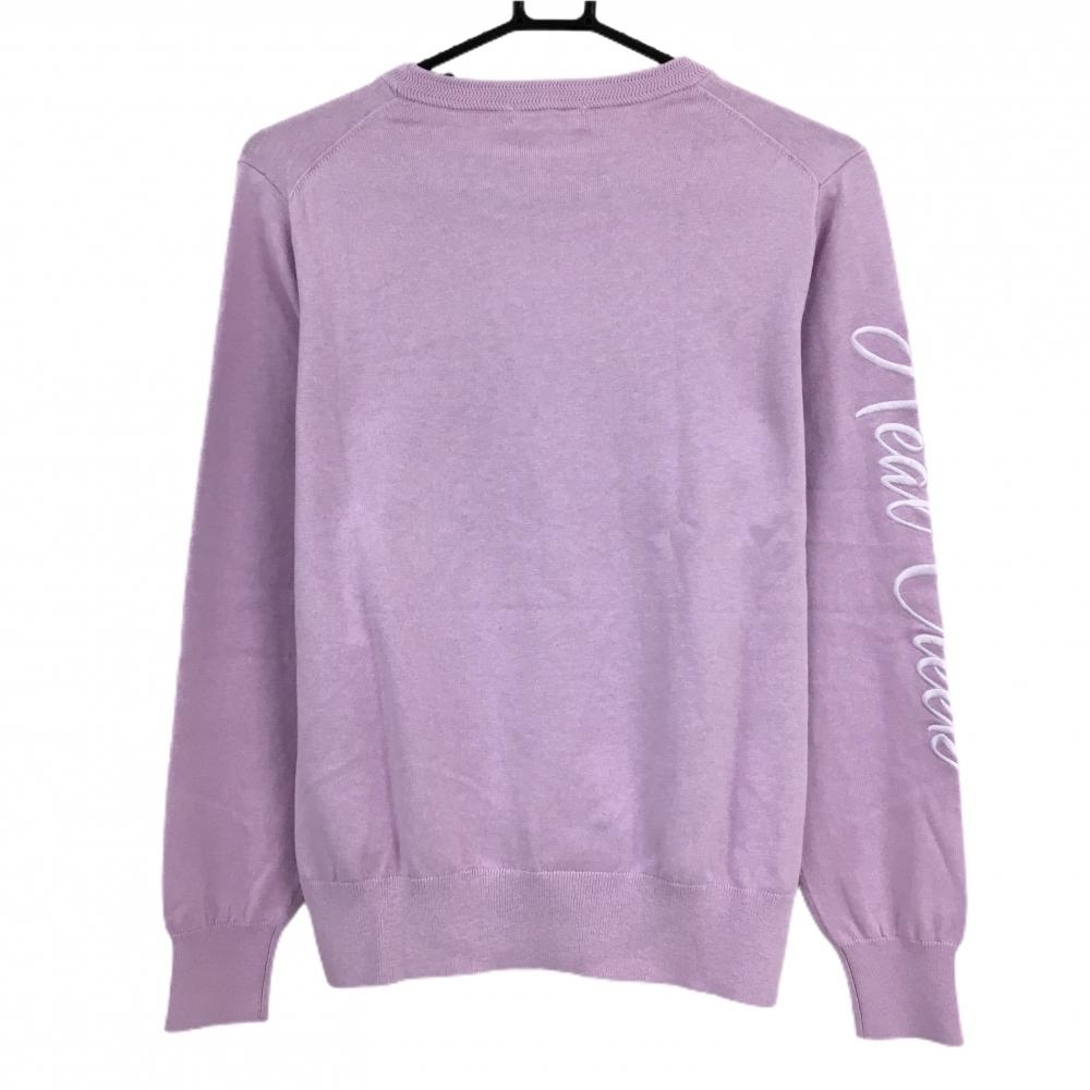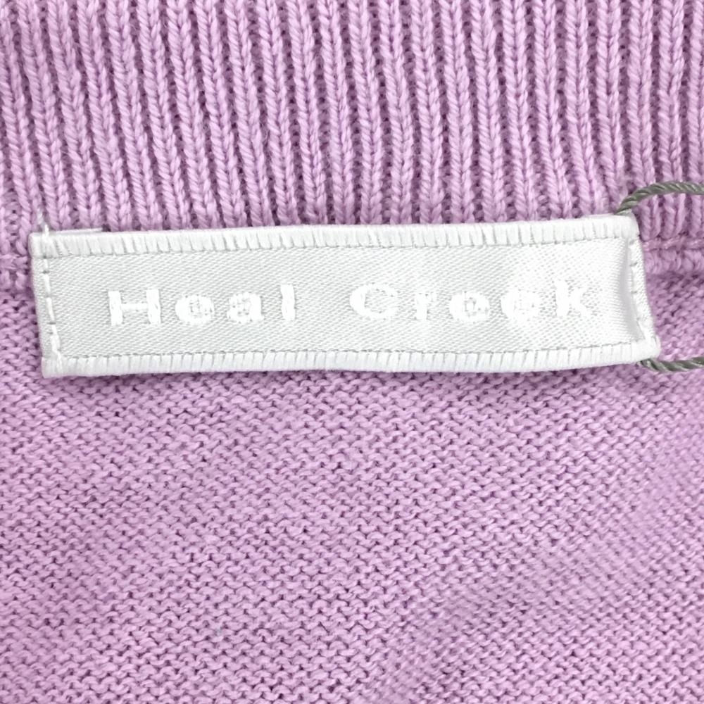 【新品】ヒールクリーク セーター ピンクパープル 袖刺しゅう コットン100% ニット レディース 42(L) ゴルフウェア Heal Creek
