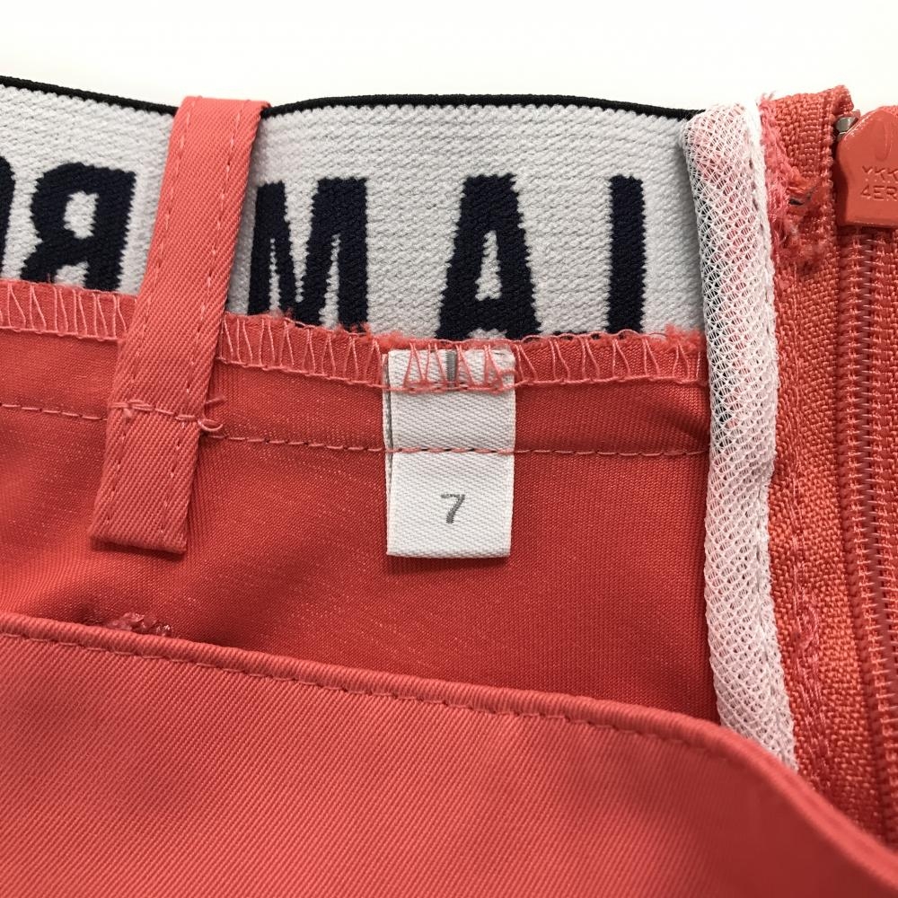 【超美品】ルコックゴルフ スカート サーモンピンク×白 サイドライン ロゴ刺しゅう レディース 7 ゴルフウェア le coq sportif