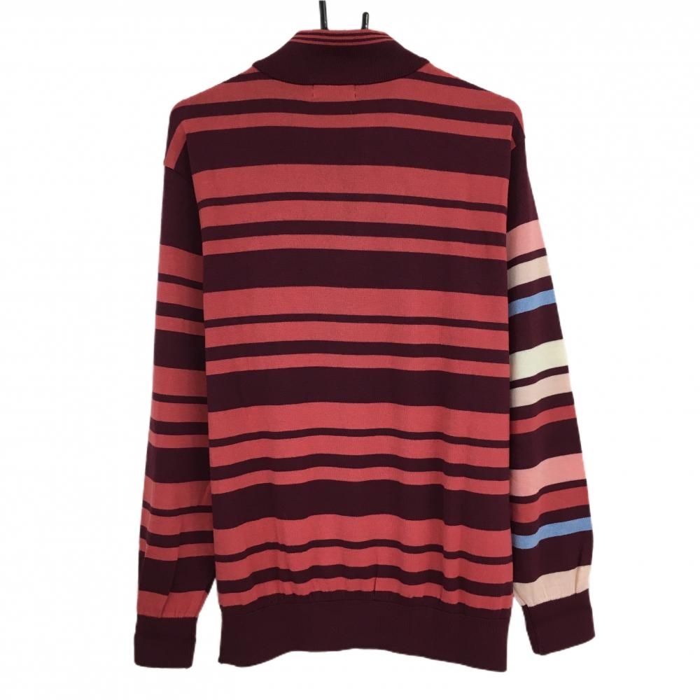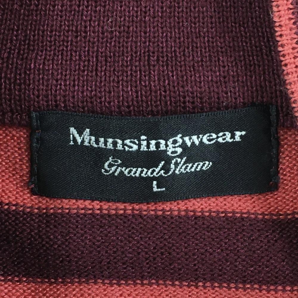 【超美品】マンシングウェア ハイネックセーター ボルドー×ピンクレッド 総柄 ハーフジップ メンズ L ゴルフウェア Munsingwear