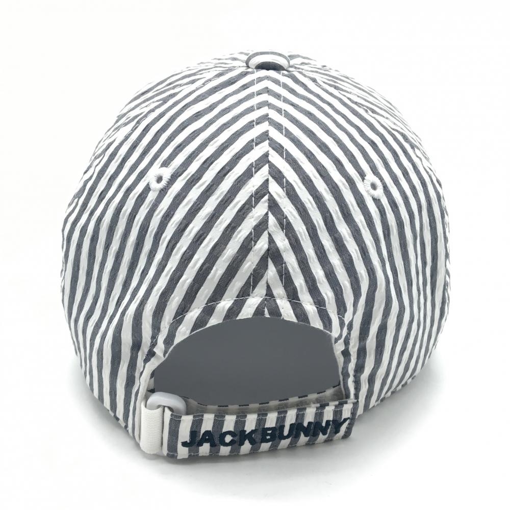 ジャックバニー キャップ 白×グレー ストライプ 立体ロゴ刺しゅう FR ゴルフウェア Jack Bunny