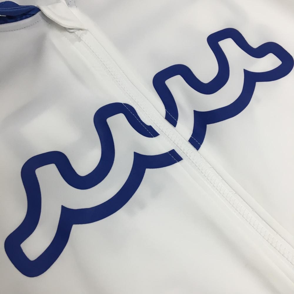 【超美品】ムータマリン ジップパーカー 白×ブルー×レッド バックロゴ メンズ 6(L) ゴルフウェア muta