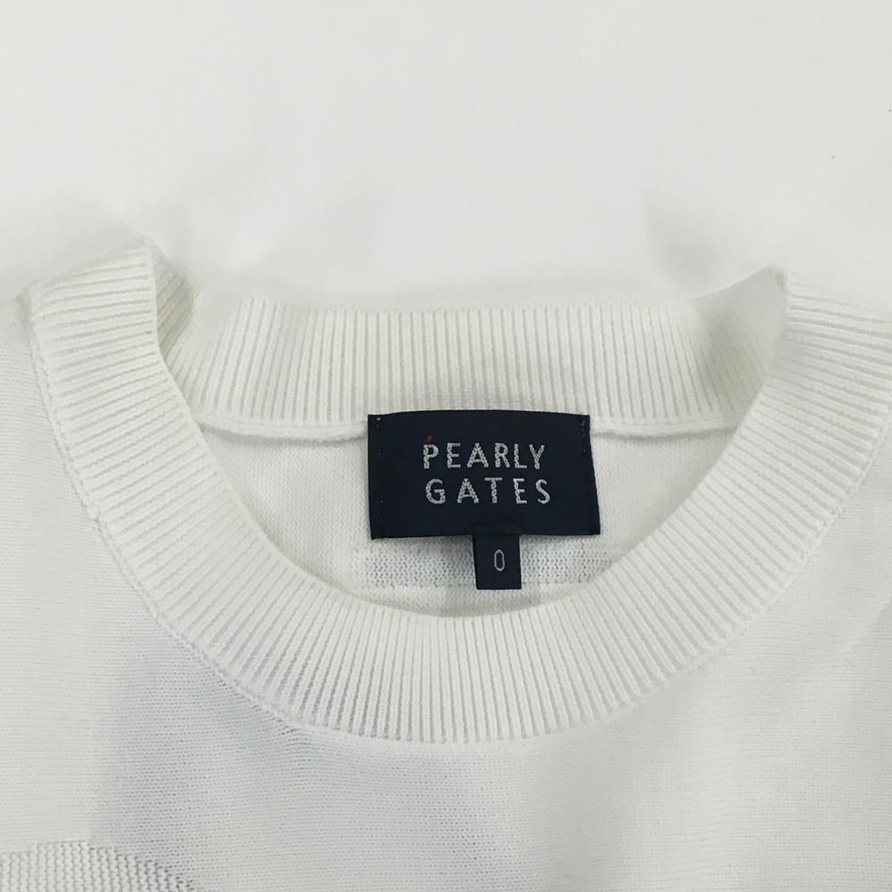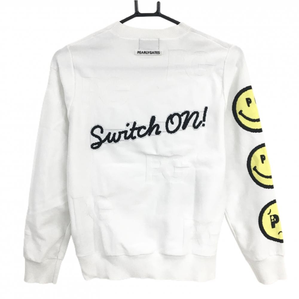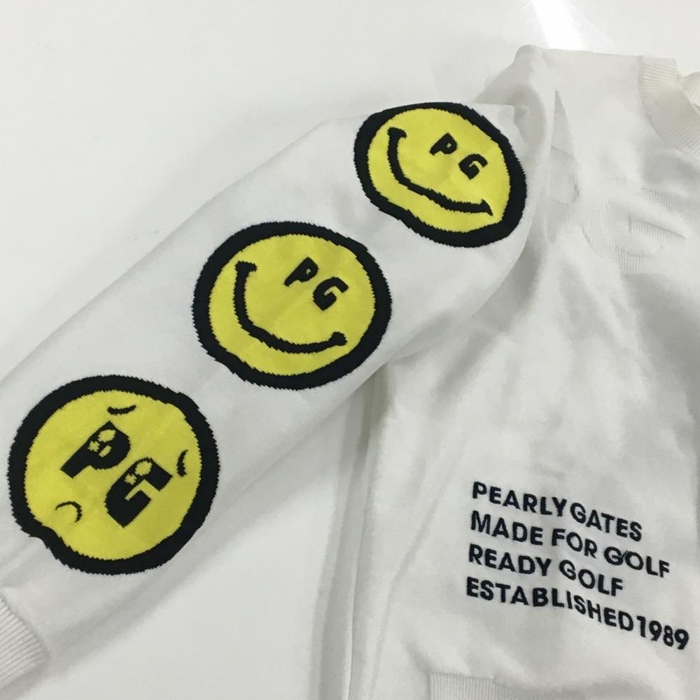 【美品】パーリーゲイツ セーター 白×イエロー 袖ニコちゃん スマイル 織生地 レディース 0(S) ゴルフウェア 2025年モデル PEARLY GATES