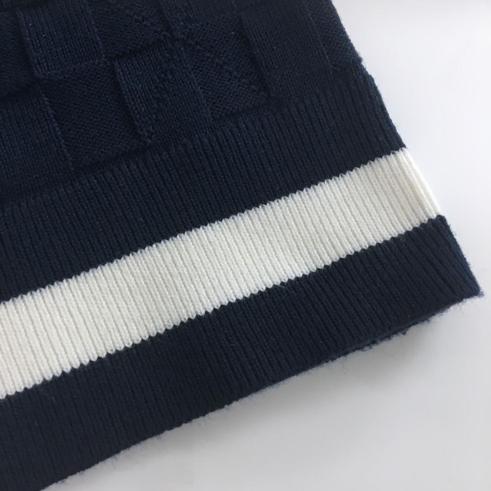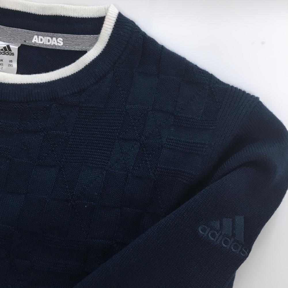 【超美品】アディダス セーター ネイビー 前身頃織生地 袖口・裾ライン ウール混 ニット レディース XS ゴルフウェア adidas