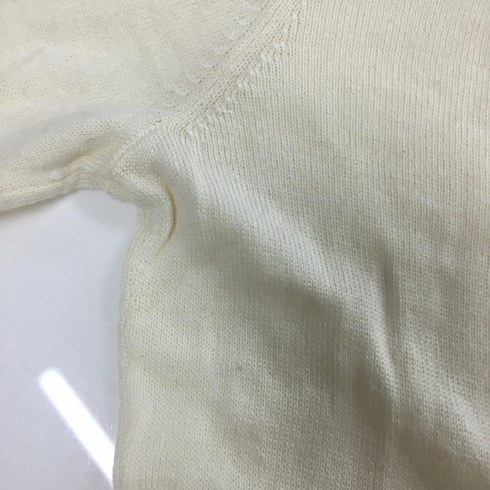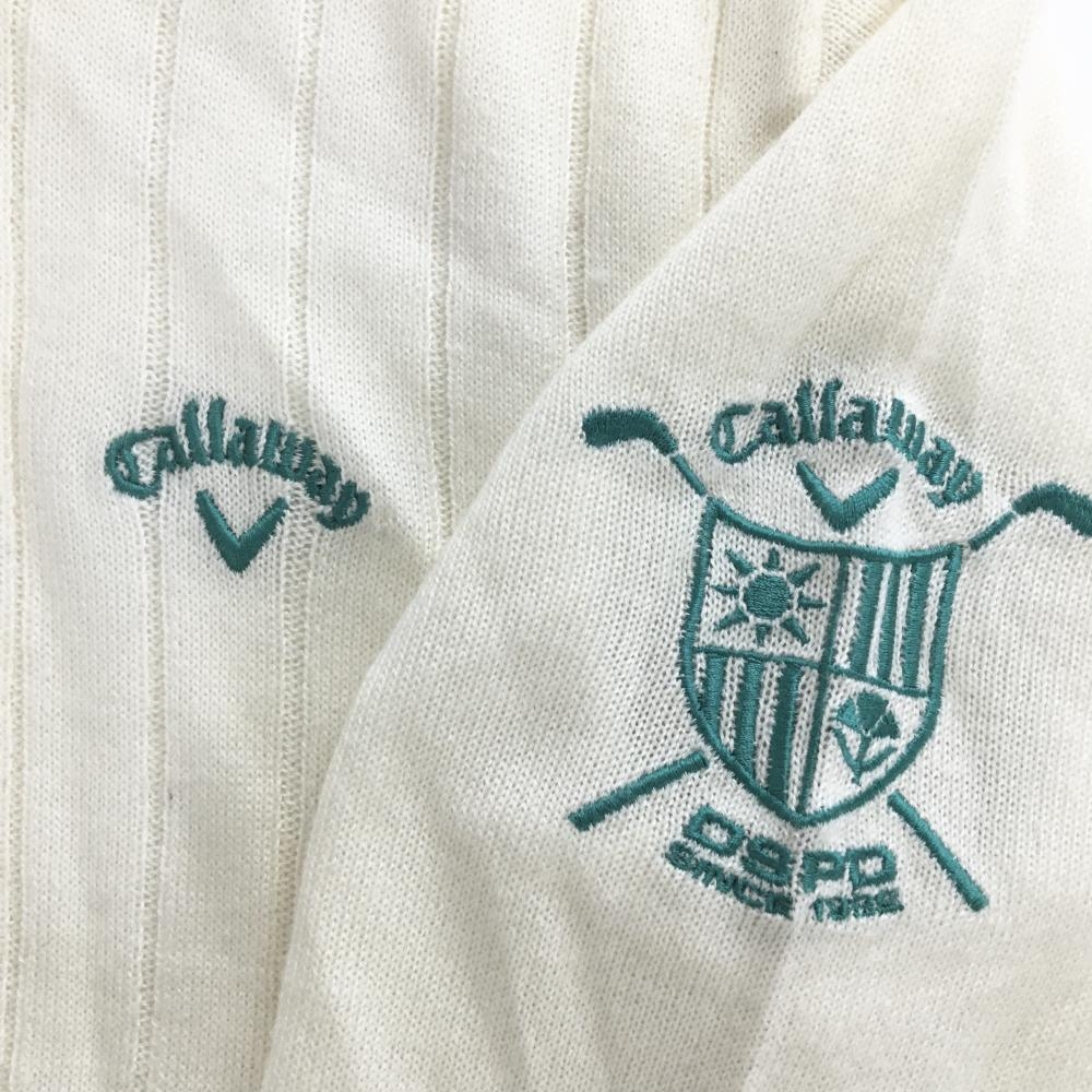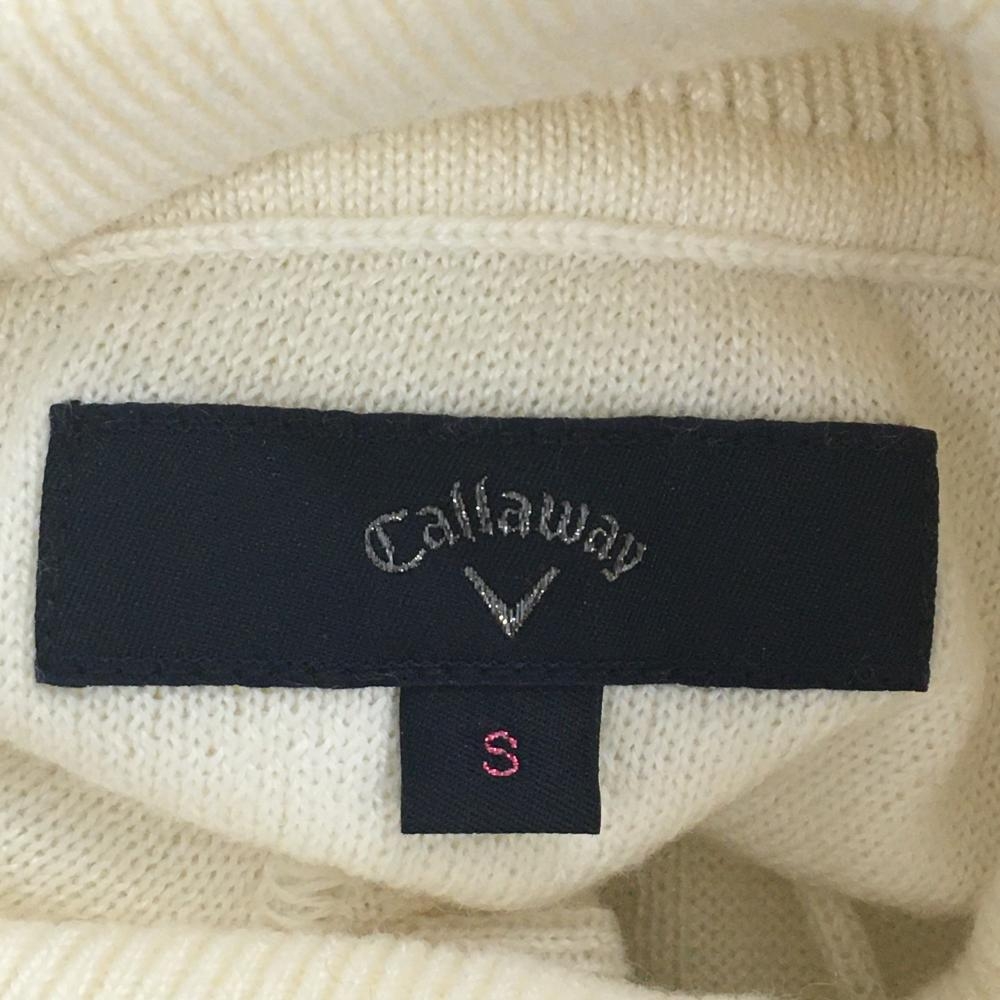 【美品】キャロウェイ タートルネックセーター 白 ストライプ織生地 ロゴグリーン ウール混 ニット レディース S ゴルフウェア Callaway