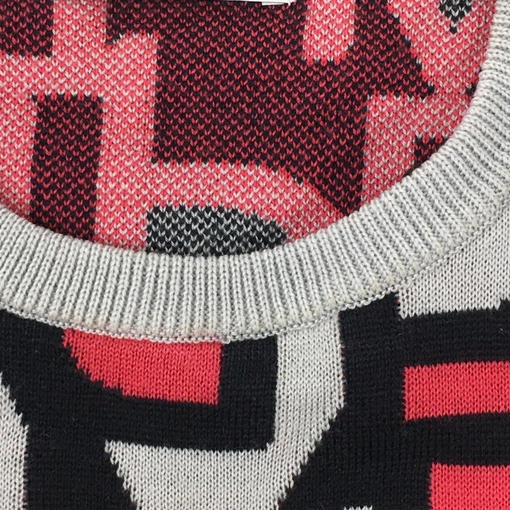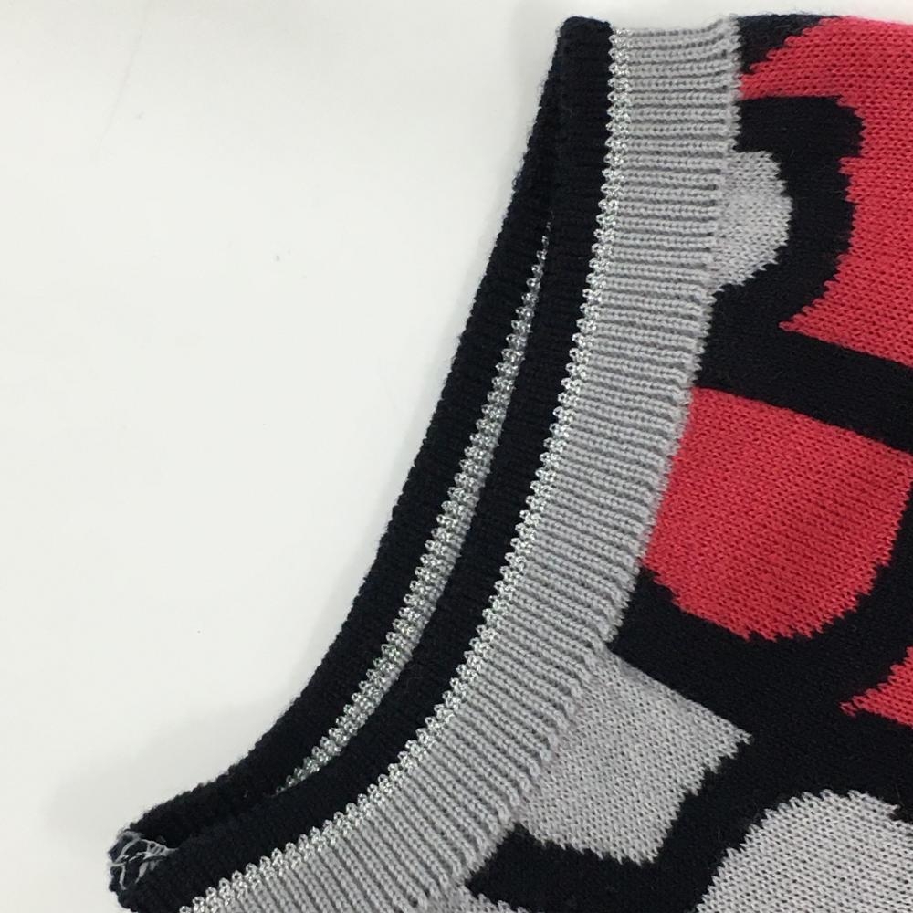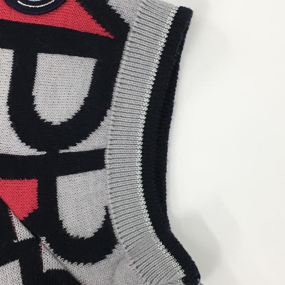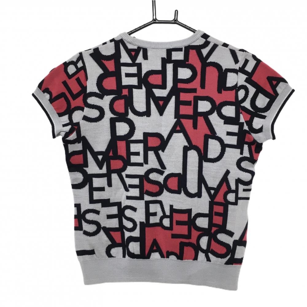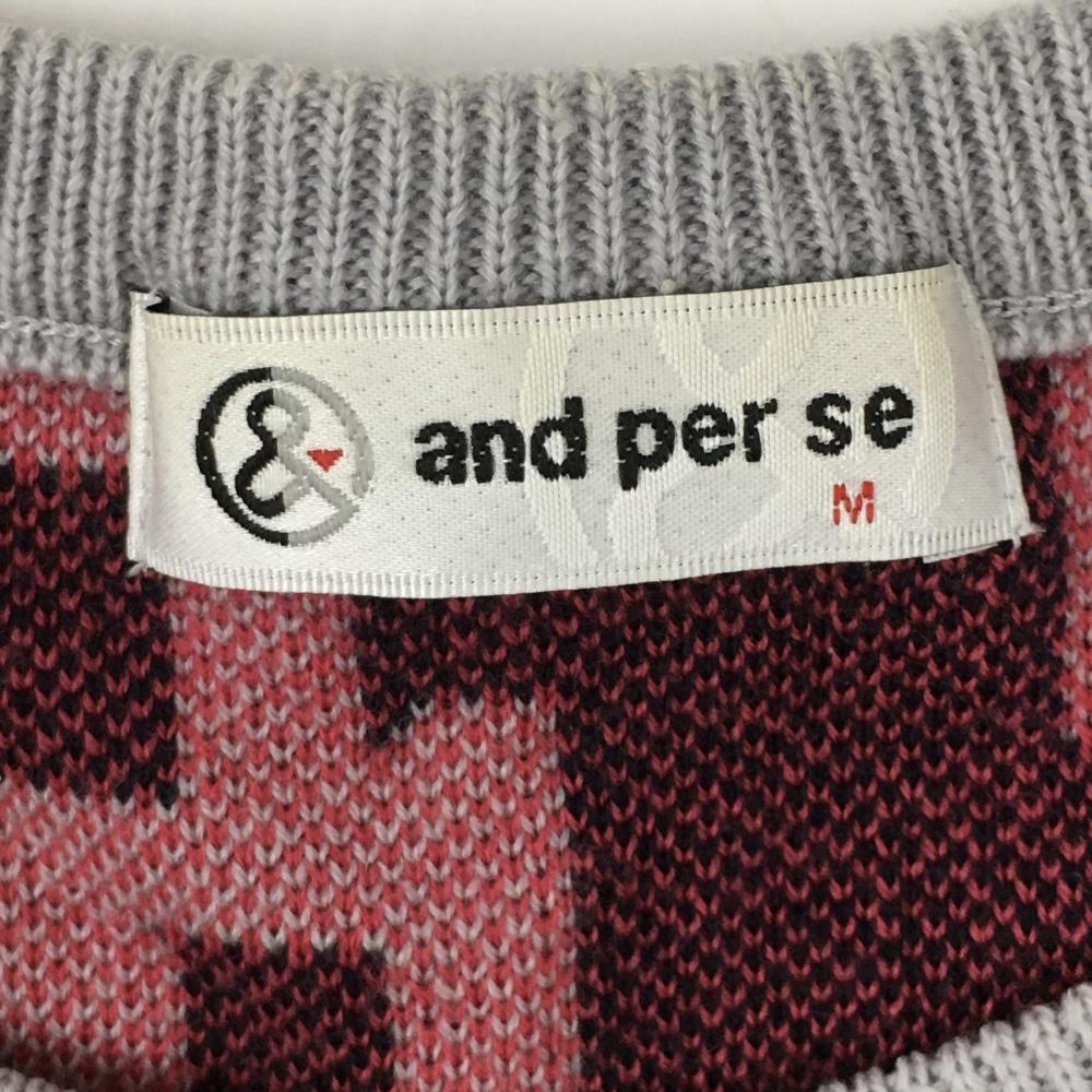 【美品】アンパスィ 半袖セーター ライトグレー×黒 英字総柄 袖ワッペン ウール混 レディース M ゴルフウェア and per se