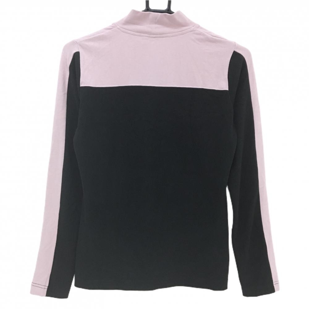 【美品】エフィカス 長袖ハイネックシャツ 黒×ピンク 胸ロゴ 微起毛 レディース S ゴルフウェア efficace