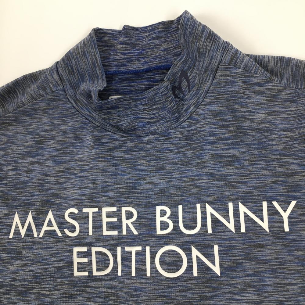 【超美品】マスターバニー 長袖ハイネックシャツ 杢ネイビー 総柄 ロゴプリント メンズ 6(XL) ゴルフウェア MASTER BUNNY EDITION
