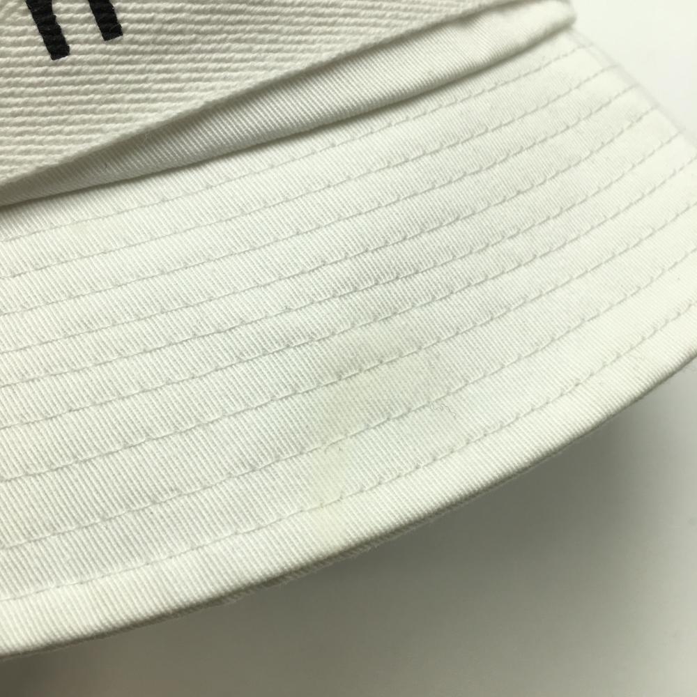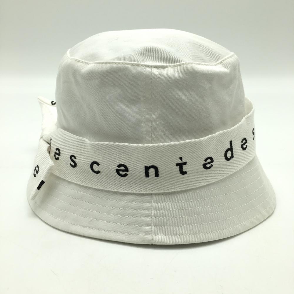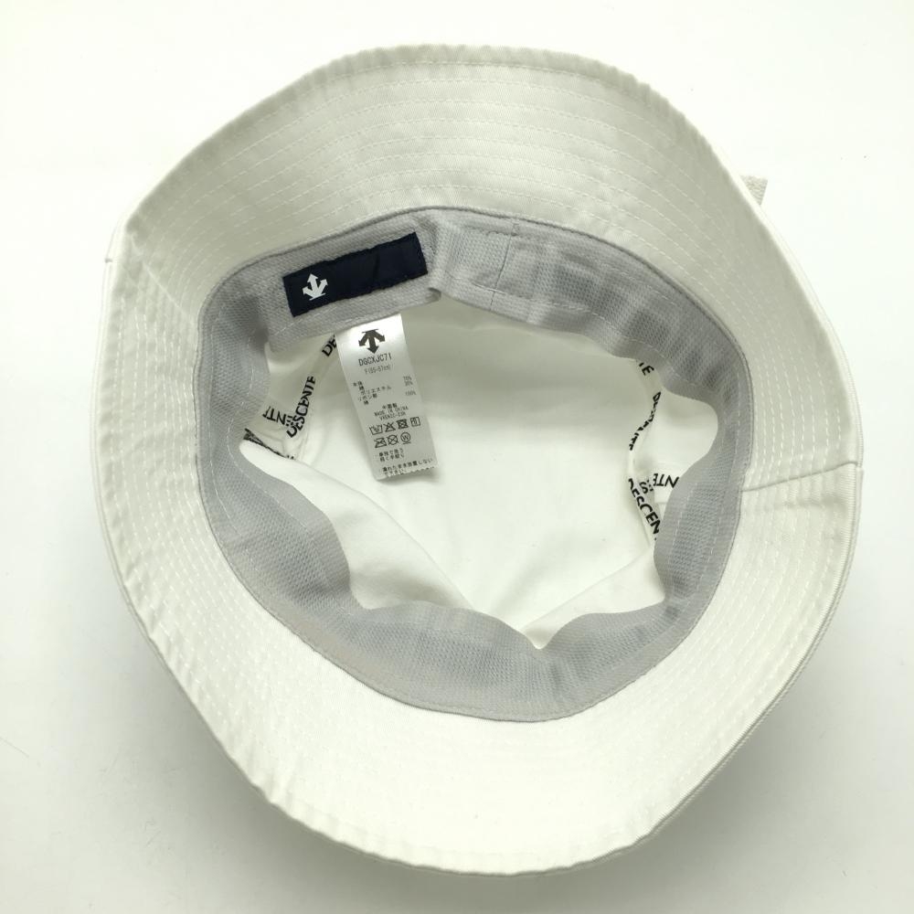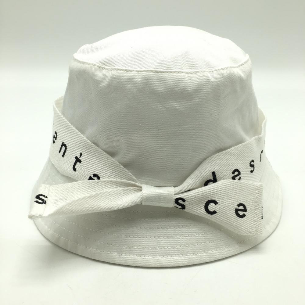 【美品】デサント バケットハット 白 ロゴリボン レディース F(55-57cm) ゴルフウェア DESCENTE