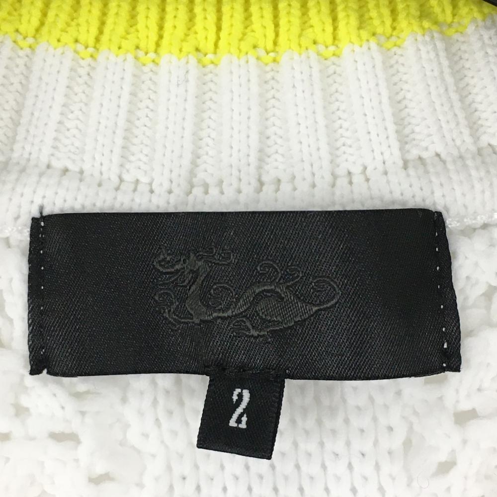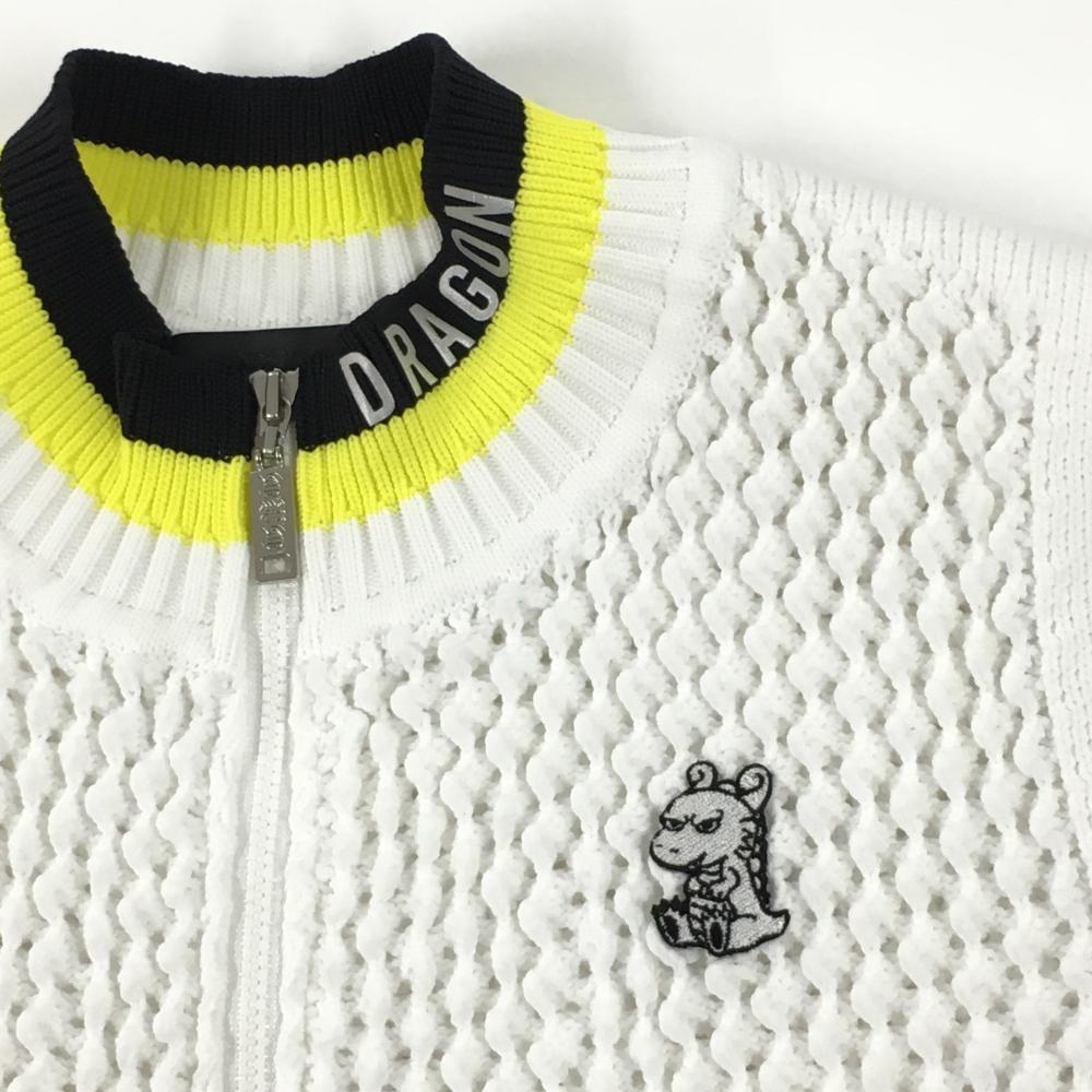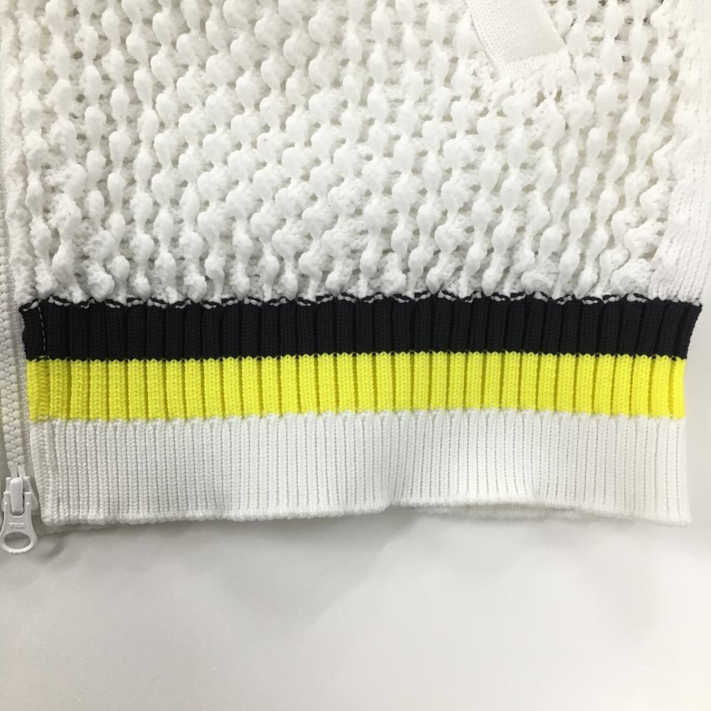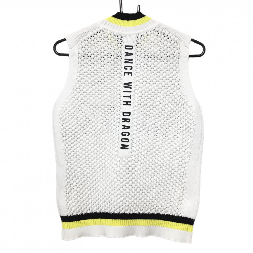 【美品】ダンスウィズドラゴン ニットベスト 白×黒×イエロー 凹凸生地 レディース 2(M) ゴルフウェア 2023年モデル Dance With Dragon