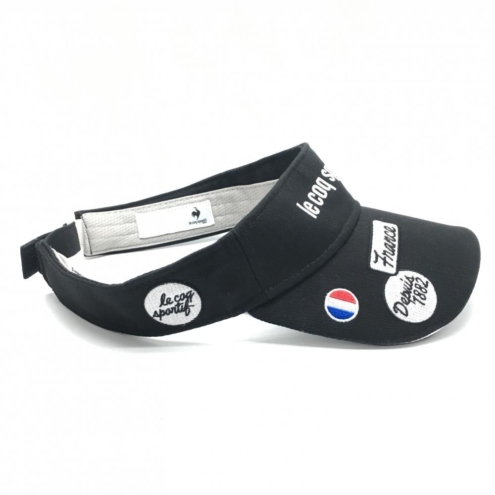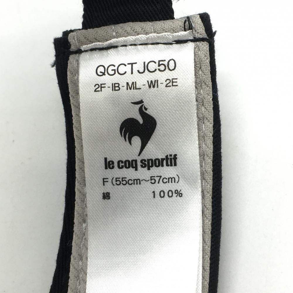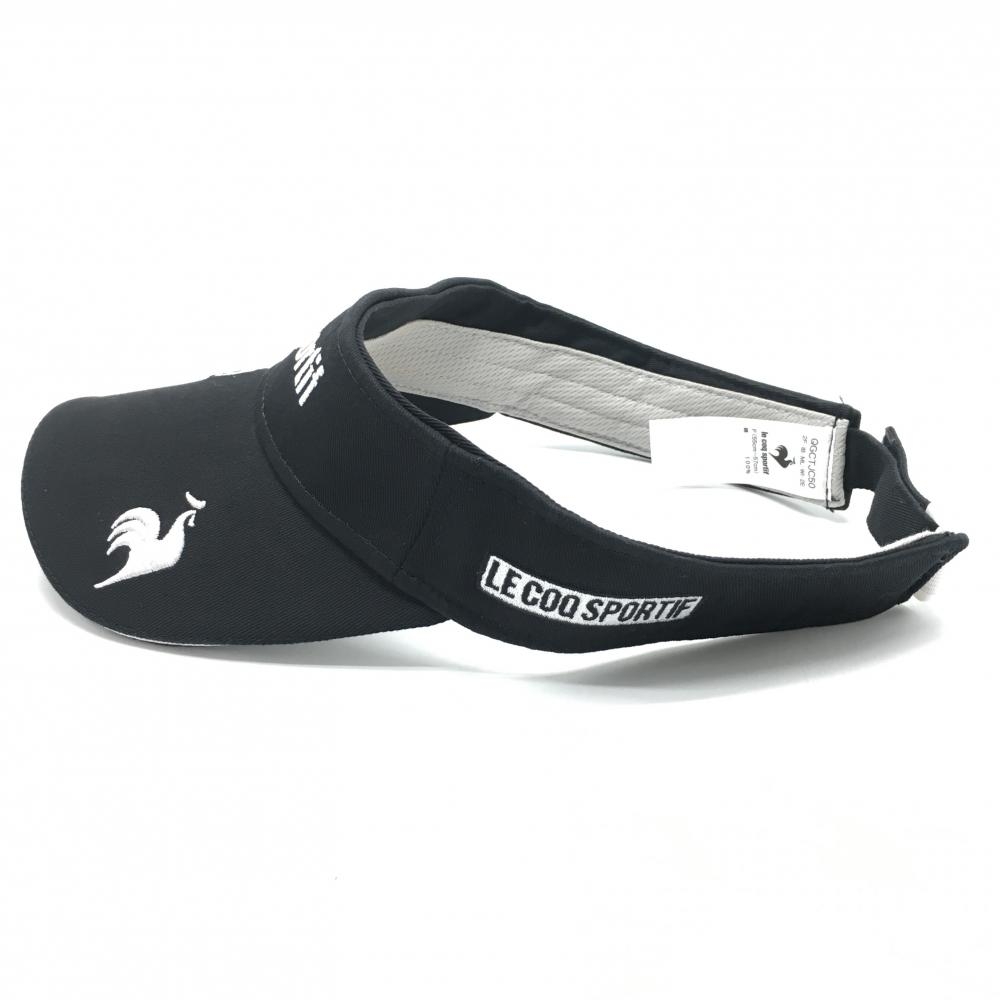 【美品】ルコックゴルフ サンバイザー 黒×白 ロゴ刺しゅう F(55cm-57cm) ゴルフウェア le coq sportif