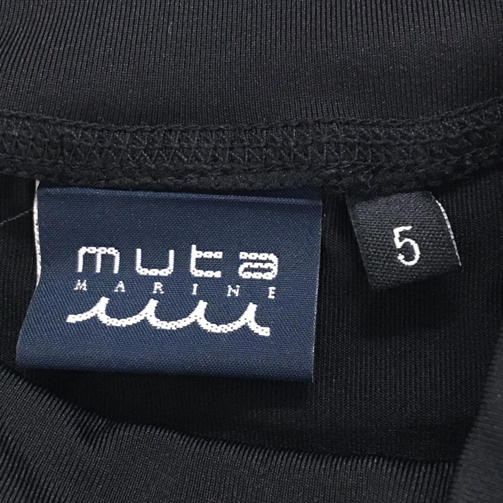 【超美品】ムータマリン 長袖ハイネックシャツ 黒×ベージュ系 後ろロゴプリント インナーシャツ メンズ 5(M) ゴルフウェア muta