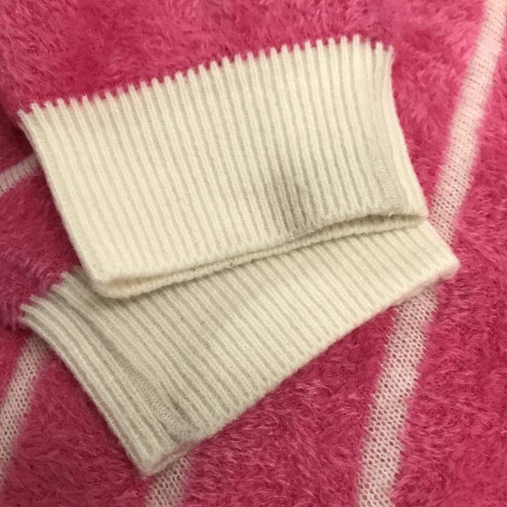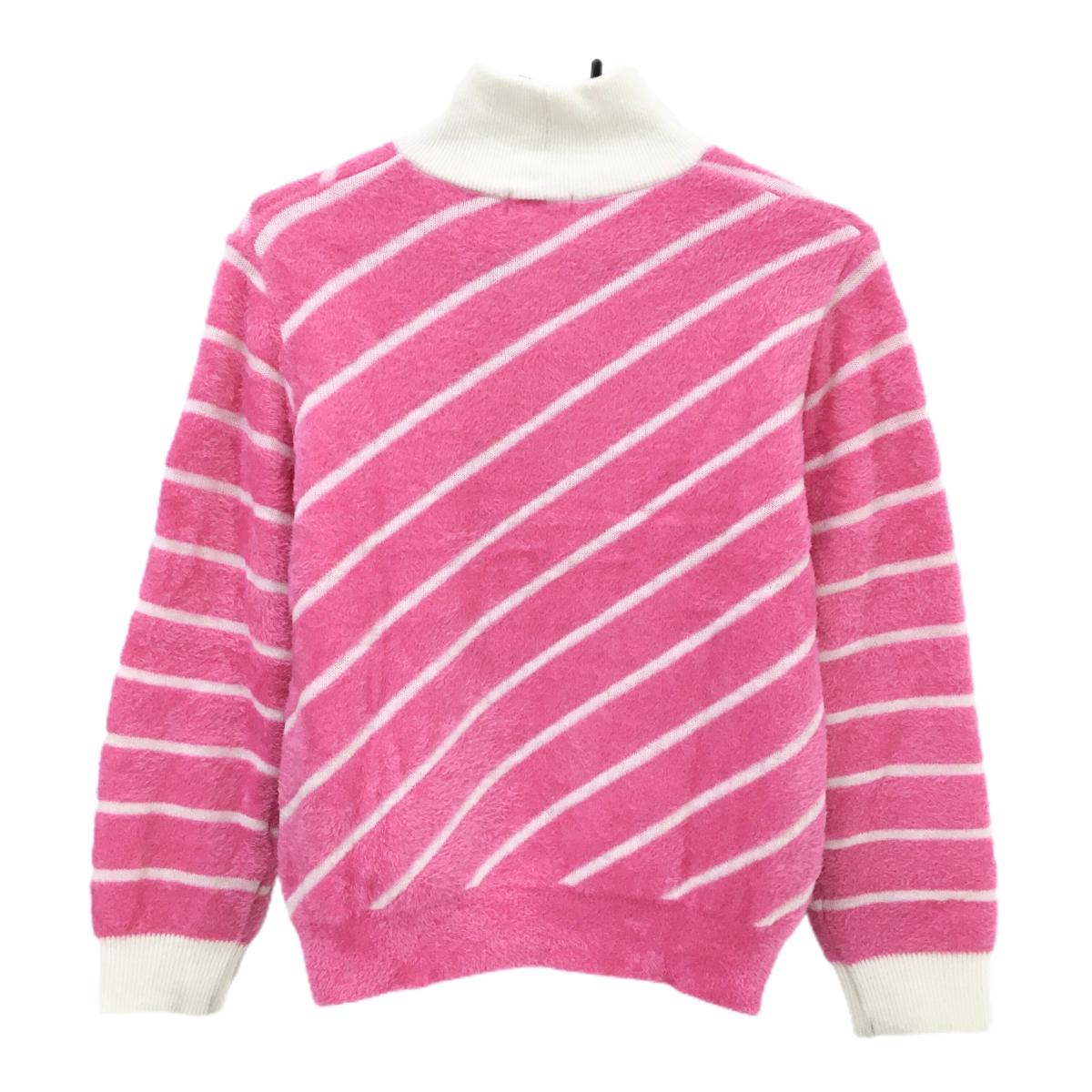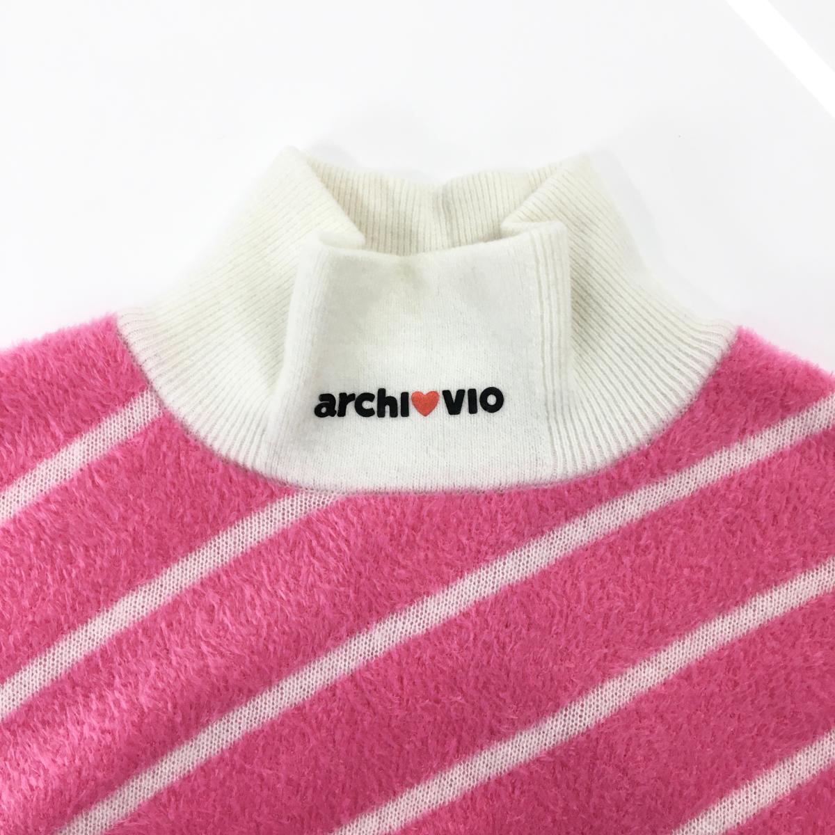 アルチビオ ハイネックセーター ピンク×白 斜めボーダー 起毛 ウール混 ニット レディース L ゴルフウェア archivio