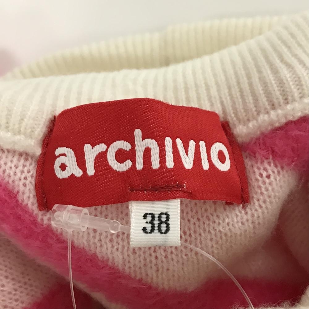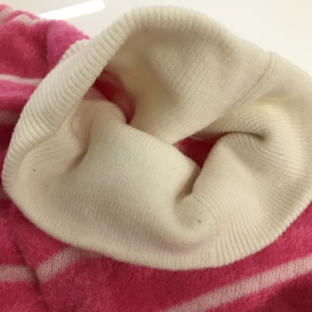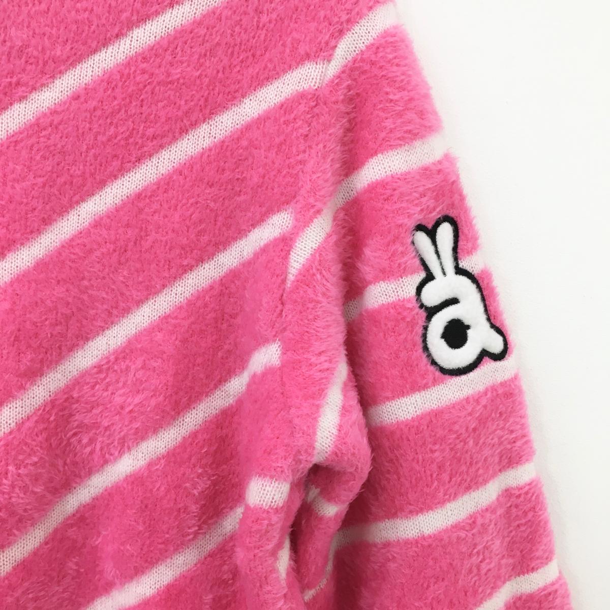 アルチビオ ハイネックセーター ピンク×白 斜めボーダー 起毛 ウール混 ニット レディース L ゴルフウェア archivio