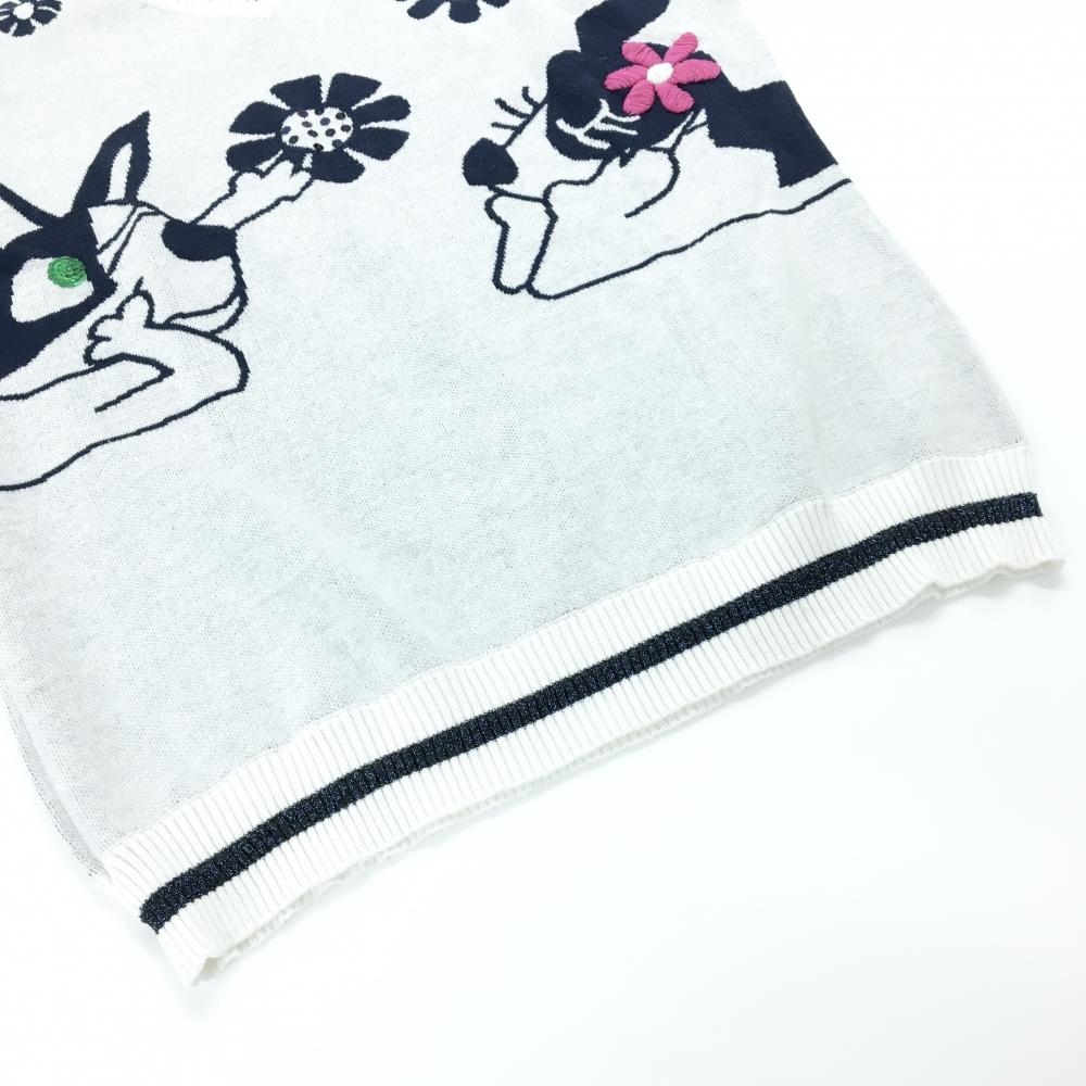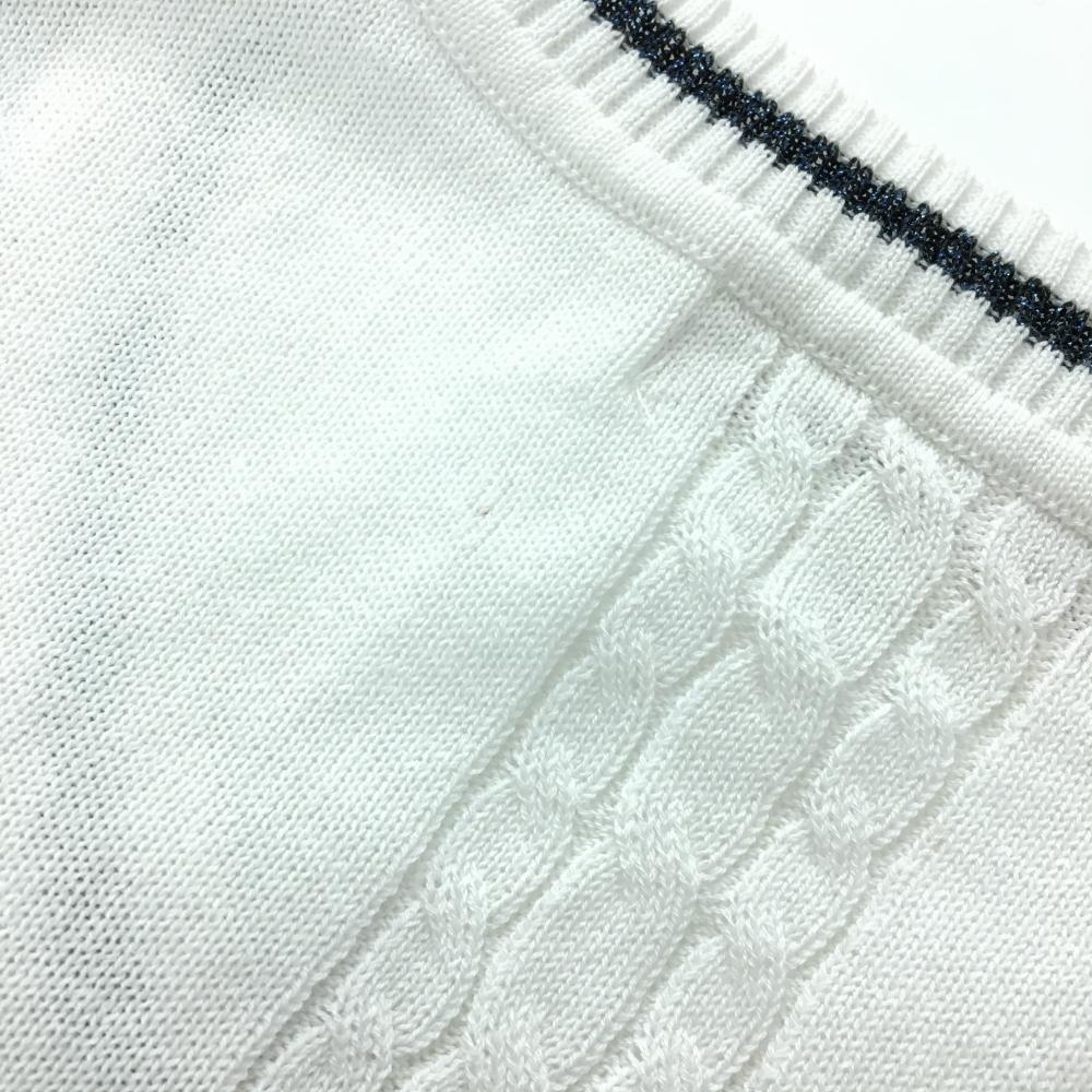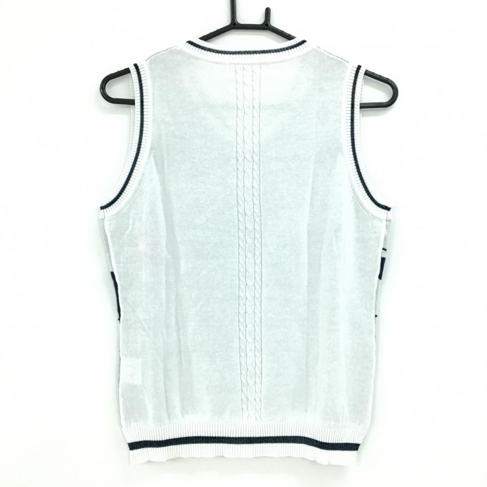 【美品】MUスポーツ ニットベスト 白×ネイビー フロントロゴ 綿100% Vネック レディース 40(M) ゴルフウェア M・U SPORTS