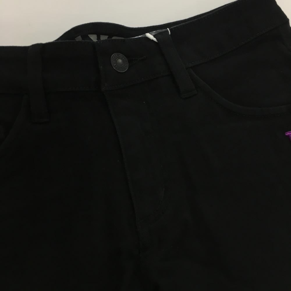 【新品】パーリーゲイツ パンツ 黒 ロゴパープル ティー装着可 ストレッチ 紙タグ付 レディース 0(S) ゴルフウェア PEARLY GATES