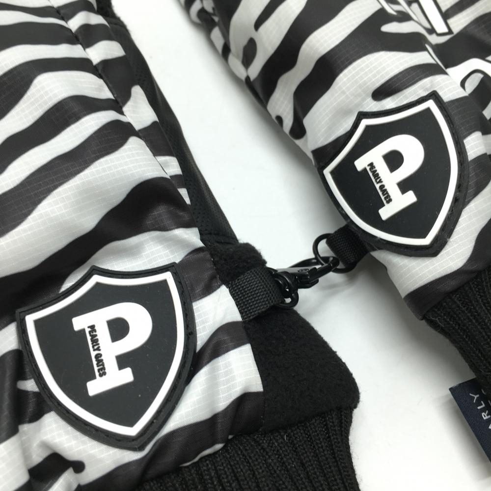 【美品】パーリーゲイツ 手袋 黒×白 ゼブラ柄 ロゴ ミトン メンズ ゴルフウェア PEARLY GATES