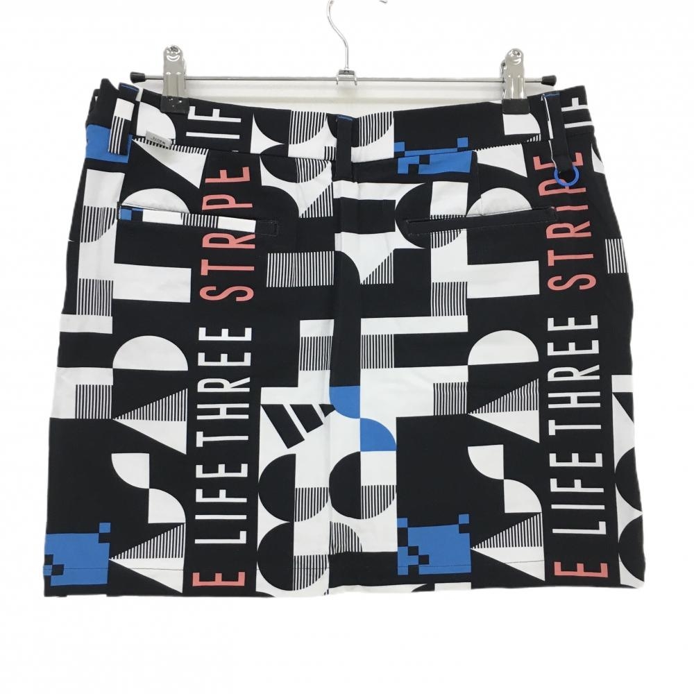 アディダス スカート 黒×白 総柄 裾ロゴ ストレッチ 内側インナーパンツ レディース XOT ゴルフウェア adidas