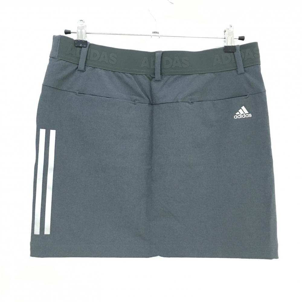 【超美品】アディダス スカート グレー×シルバー 3ライン ストレッチ インナーパンツ付き レディース 2XL ゴルフウェア adidas