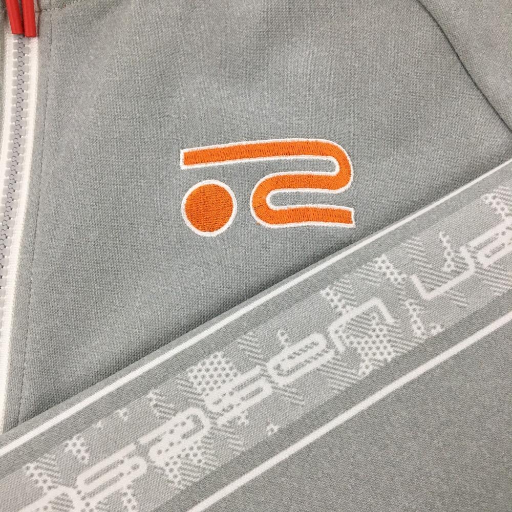 【超美品】ロサーセン ジャケットブルゾン グレー×白 袖・サイドライン ロゴオレンジ ダブルジップ レディース L ゴルフウェア Rosasen