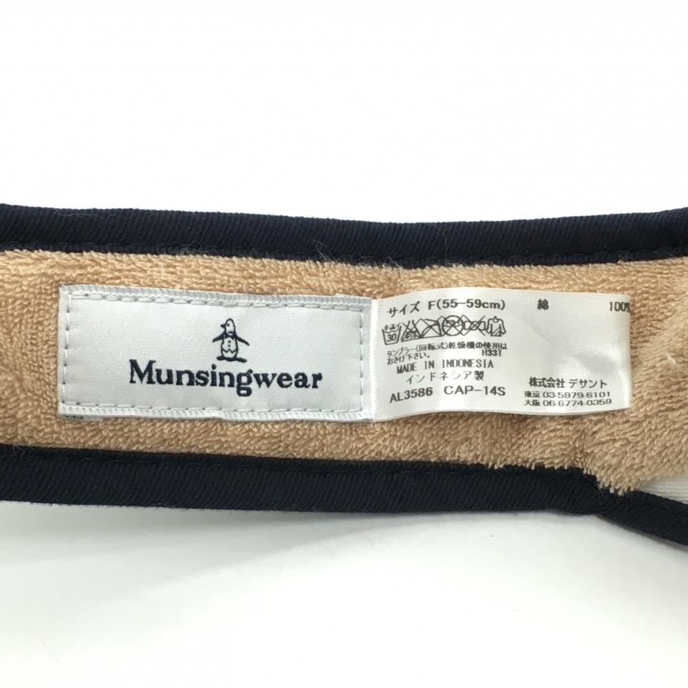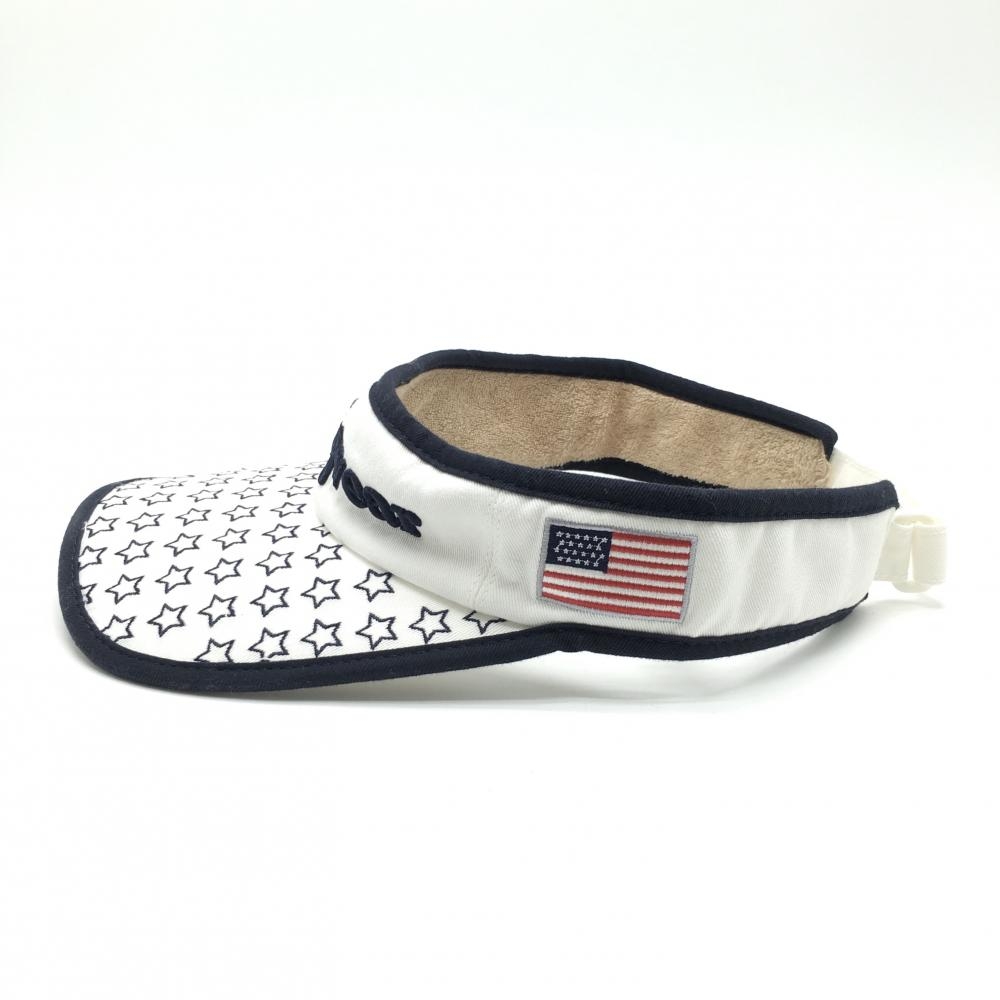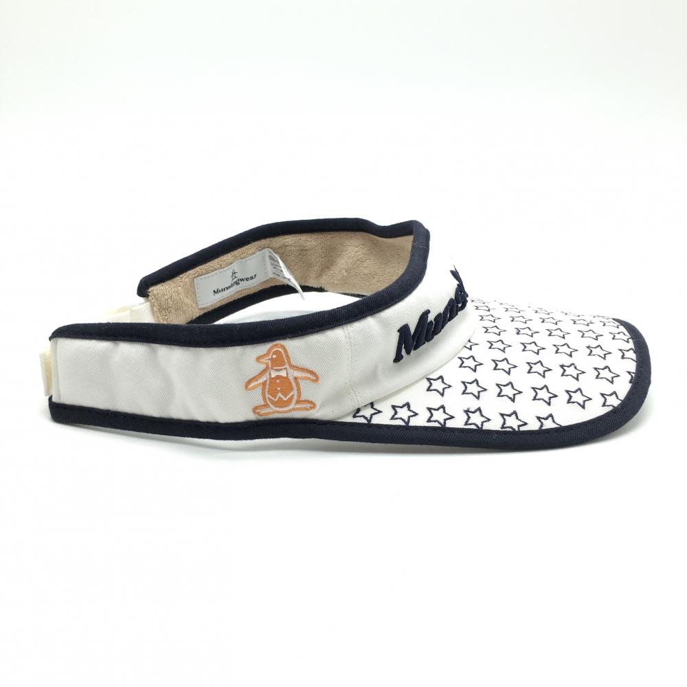 【美品】マンシングウェア サンバイザー 白×ネイビー 星柄 立体ロゴ刺しゅう 星条旗 F(55-59cm) ゴルフウェア Munsingwear