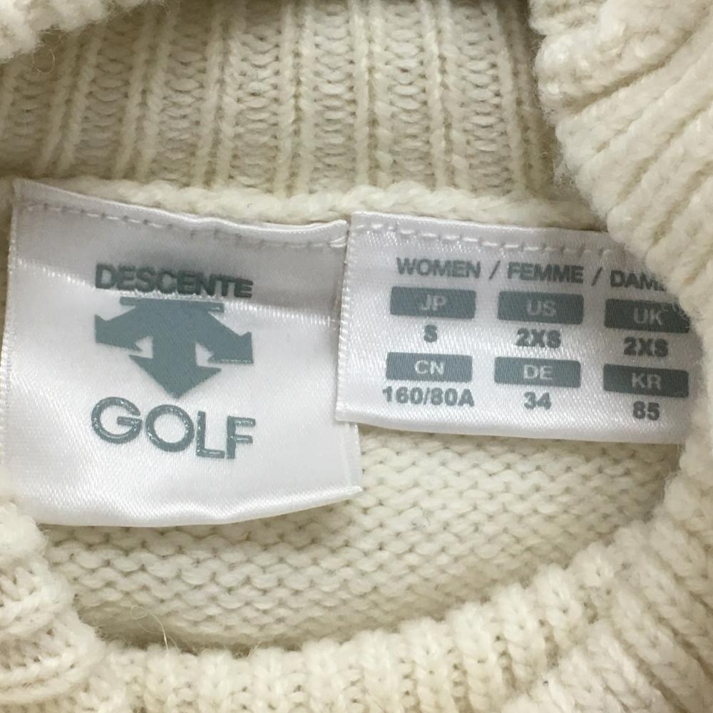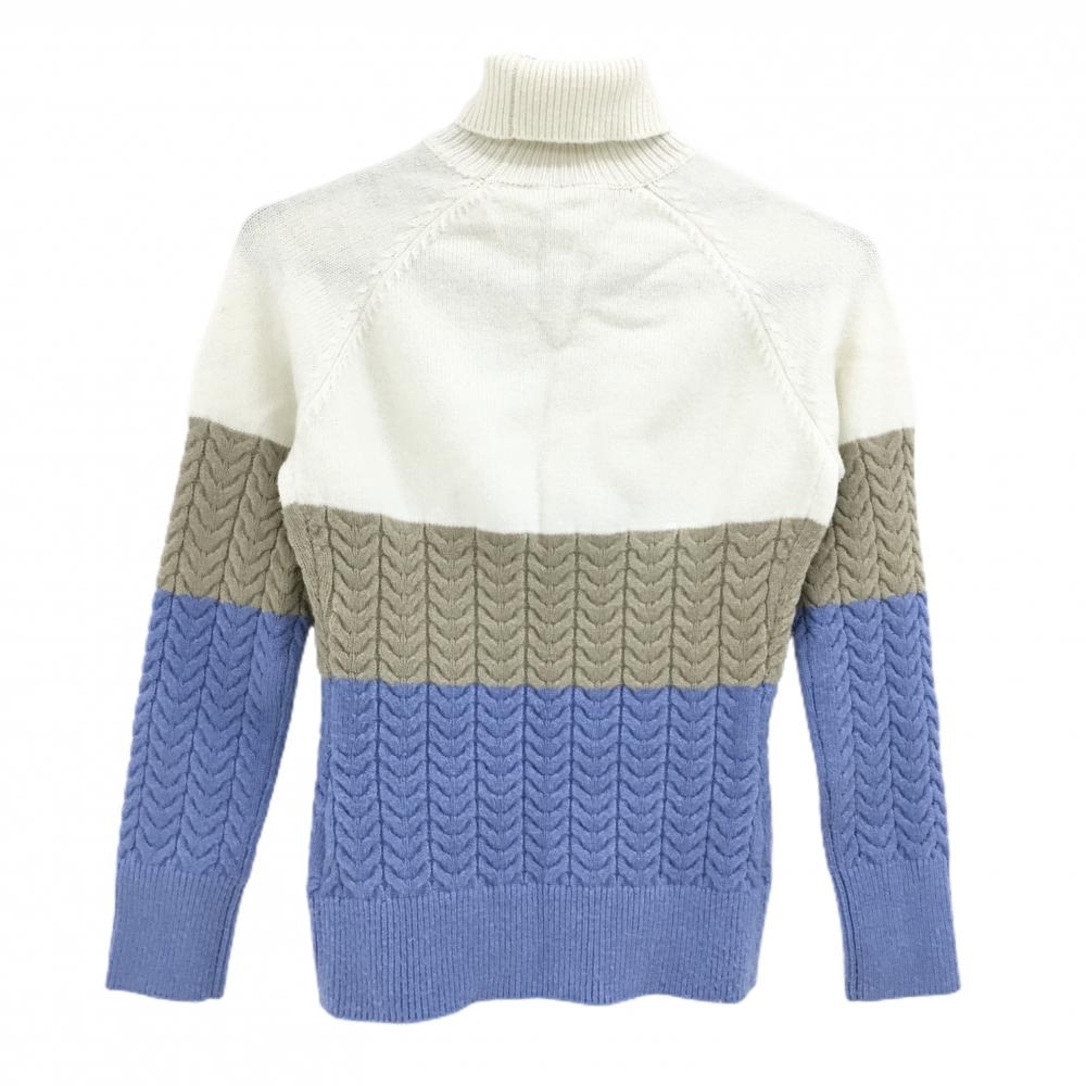【美品】デサントゴルフ タートルネックセーター 白×ベージュ×ライトブルー レディース S ゴルフウェア DESCENTE