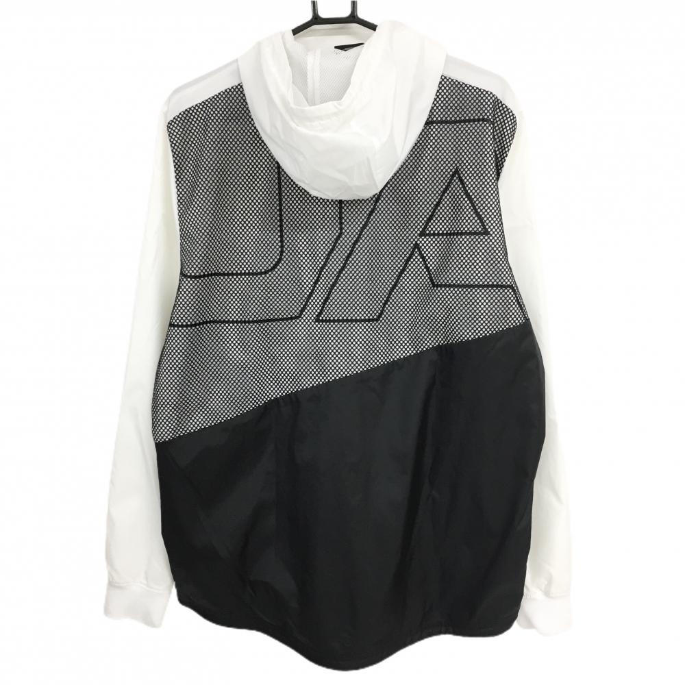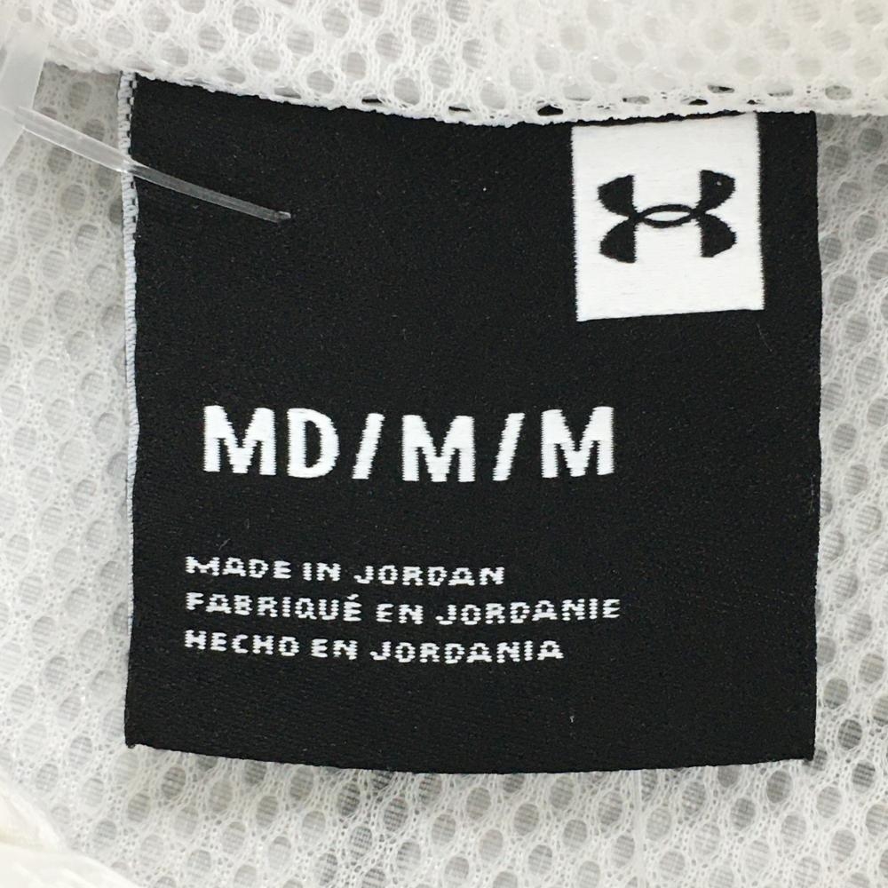 【美品】アンダーアーマー ジップパーカー 白×黒 一部メッシュ 裾ドローコード 裏地メッシュ メンズ MD/M/M ゴルフウェア UNDER ARMOUR