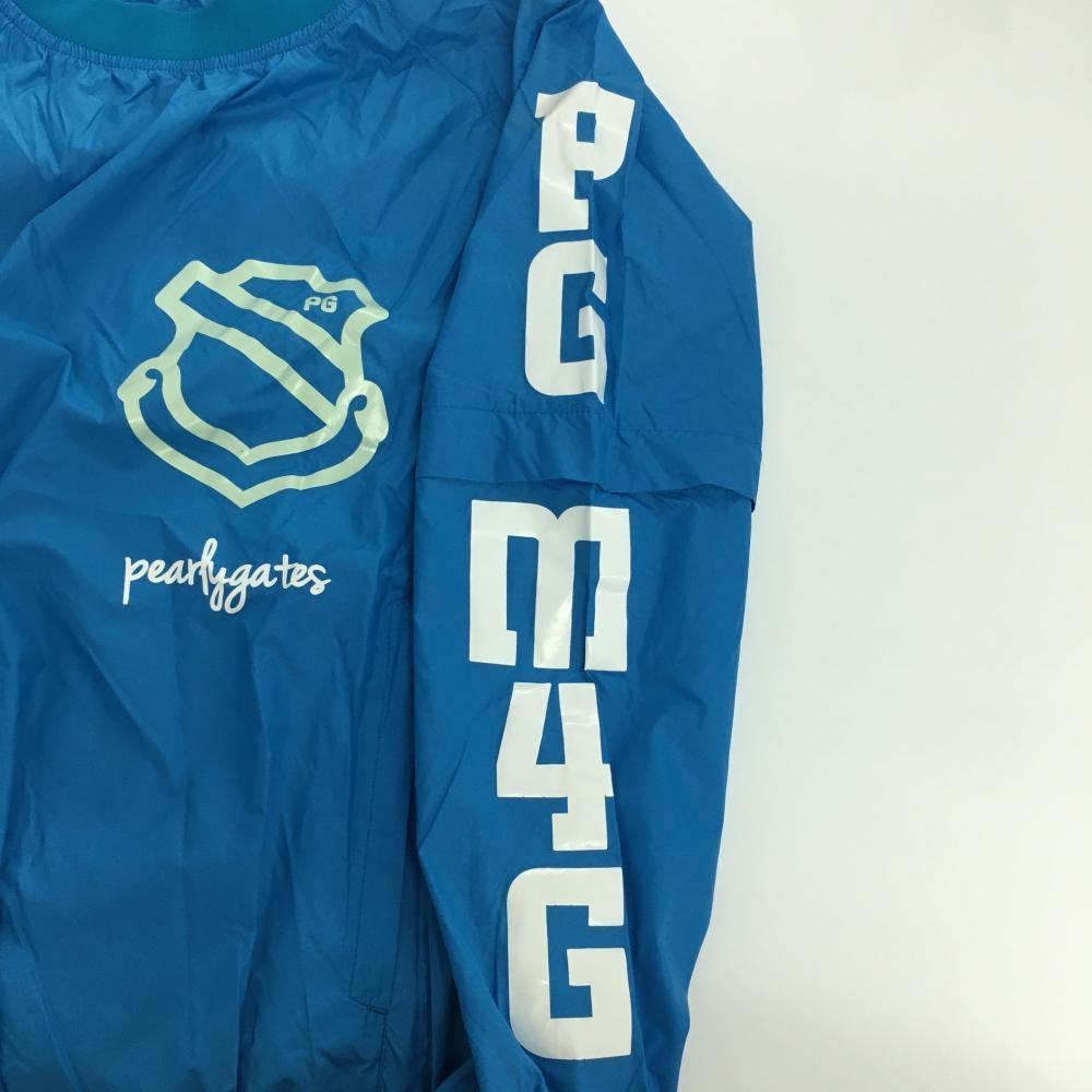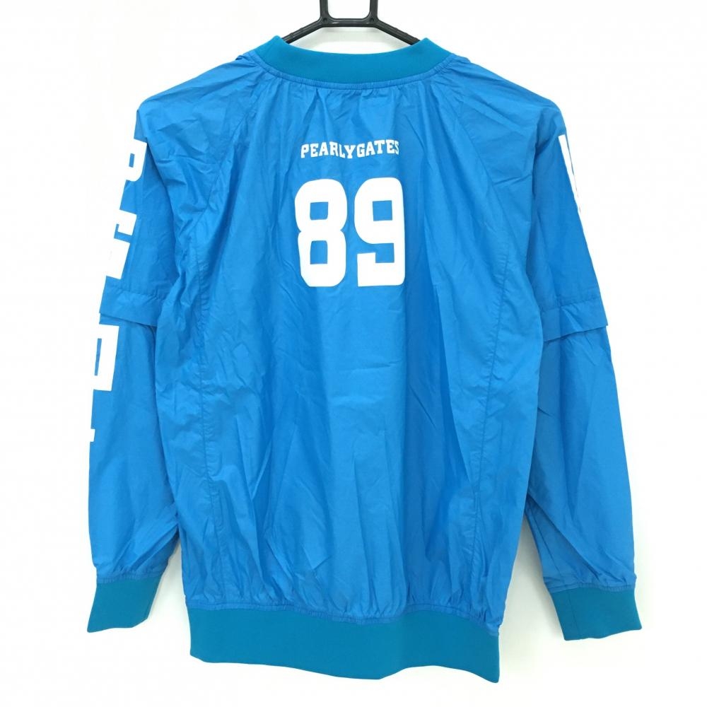 【美品】パーリーゲイツ 2WAYスニード ブルー系×白 袖着脱可 薄手 ロゴプリント ブルゾン レディース 0(S) ゴルフウェア PEARLY GATES