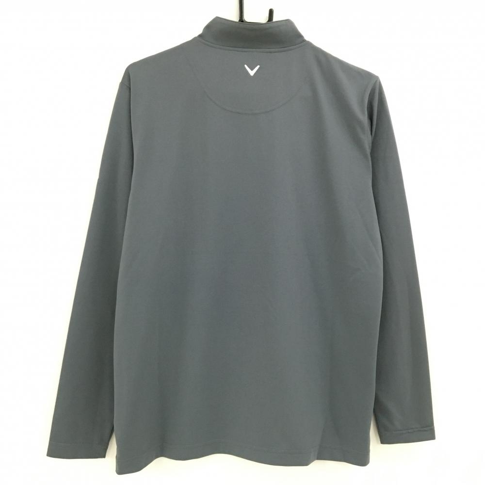 キャロウェイ 長袖ハイネックシャツ グレー×白 ハーフジップ ロゴ刺しゅう 肩ライン メンズ L ゴルフウェア Callaway