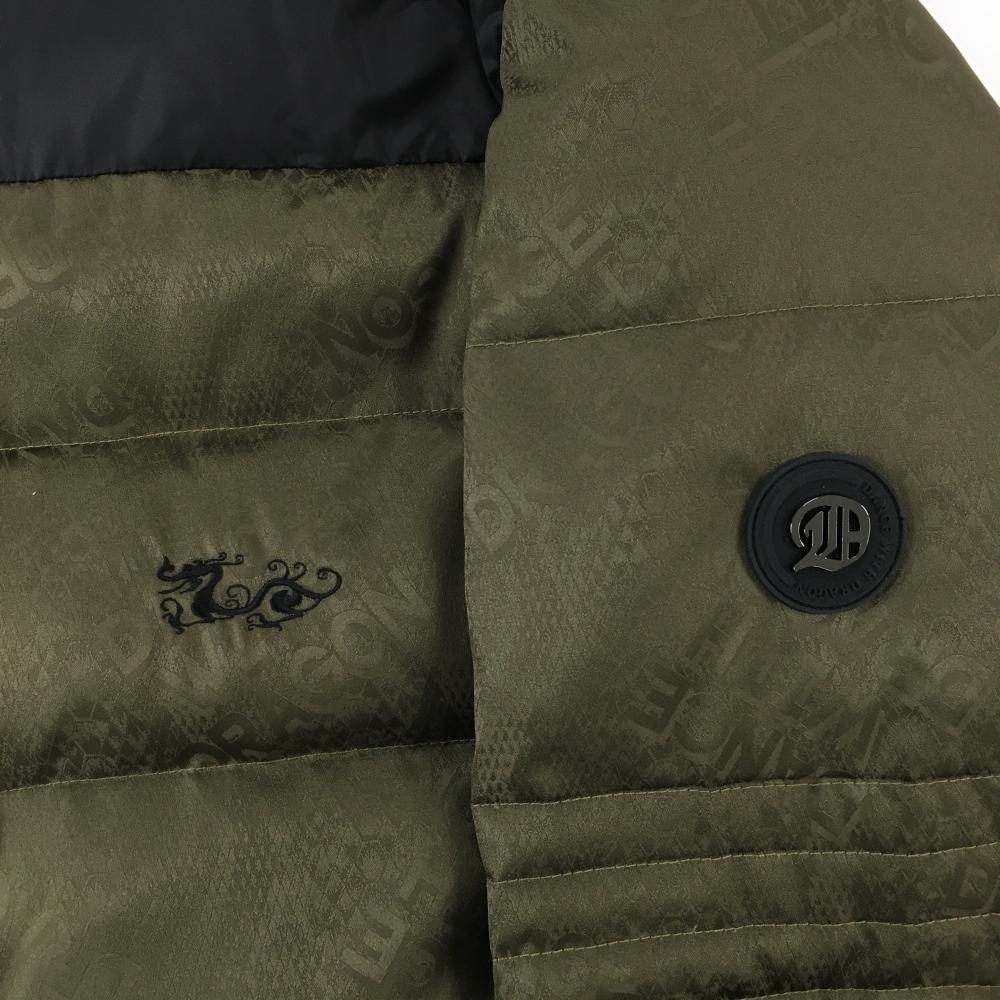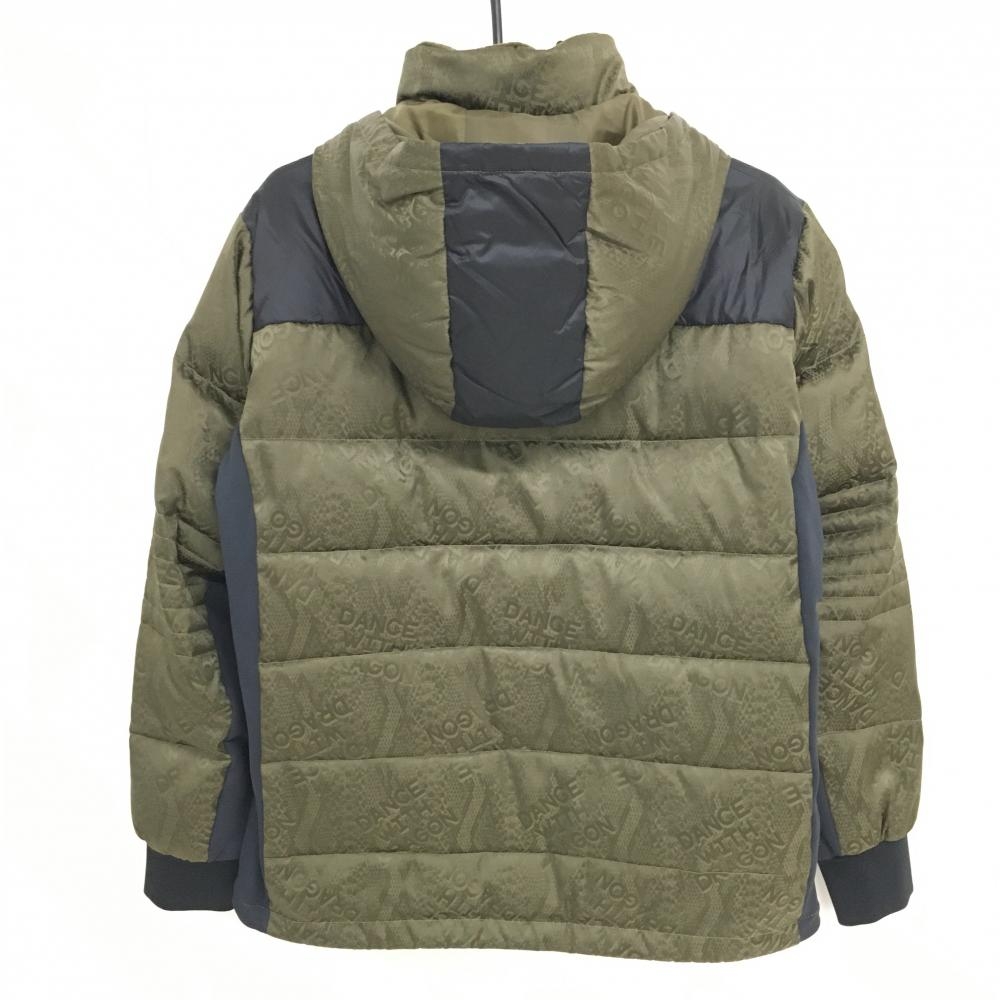 【美品】ダンスウィズドラゴン フード付ダウンジャケット カーキ×黒 総柄地模様 メンズ 3(L) ゴルフウェア Dance With Dragon