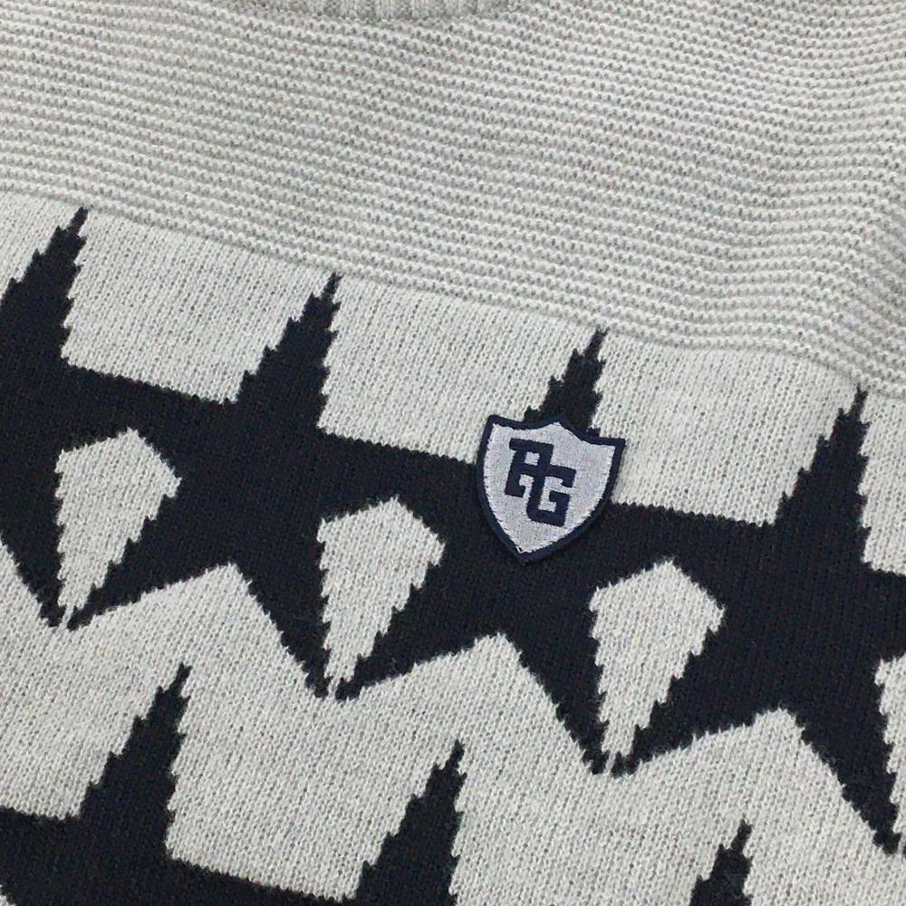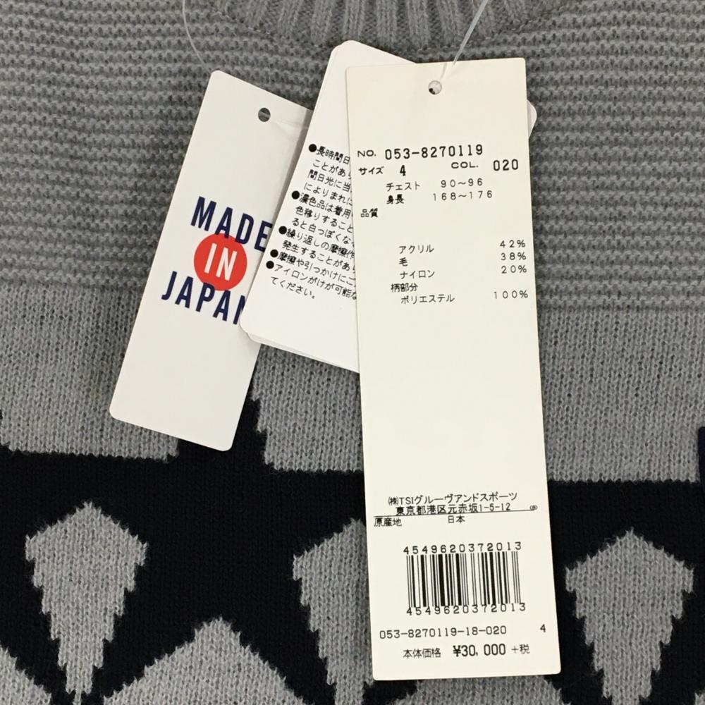 【新品】パーリーゲイツ セーター グレー×ネイビー 胸元星柄 ウール混 ニット メンズ 4(M) ゴルフウェア PEARLY GATES