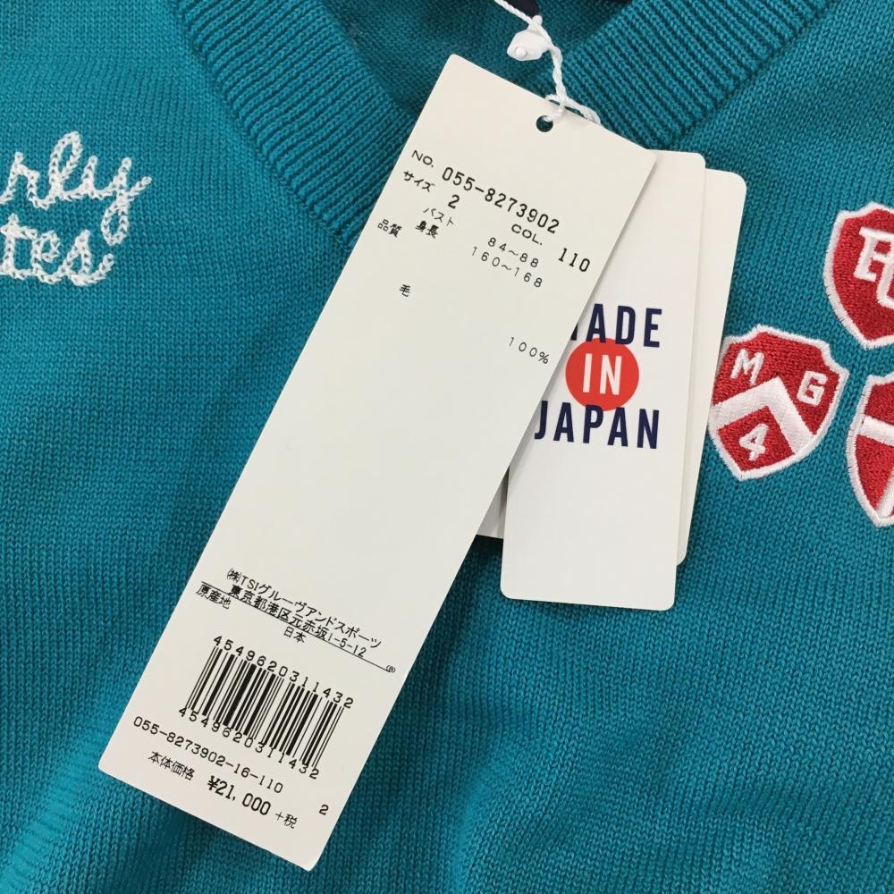 【新品】パーリーゲイツ ニットベスト ブルーグリーン 裾ライン ウール100% Vネック レディース 2(L) ゴルフウェア PEARLY GATES