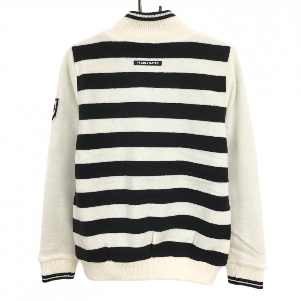 【超美品】パーリーゲイツ ニットジャケット 白×黒 ロゴブルー 裏地ニコちゃんロゴ総柄 レディース 1(M) ゴルフウェア PEARLY GATES