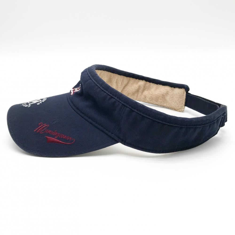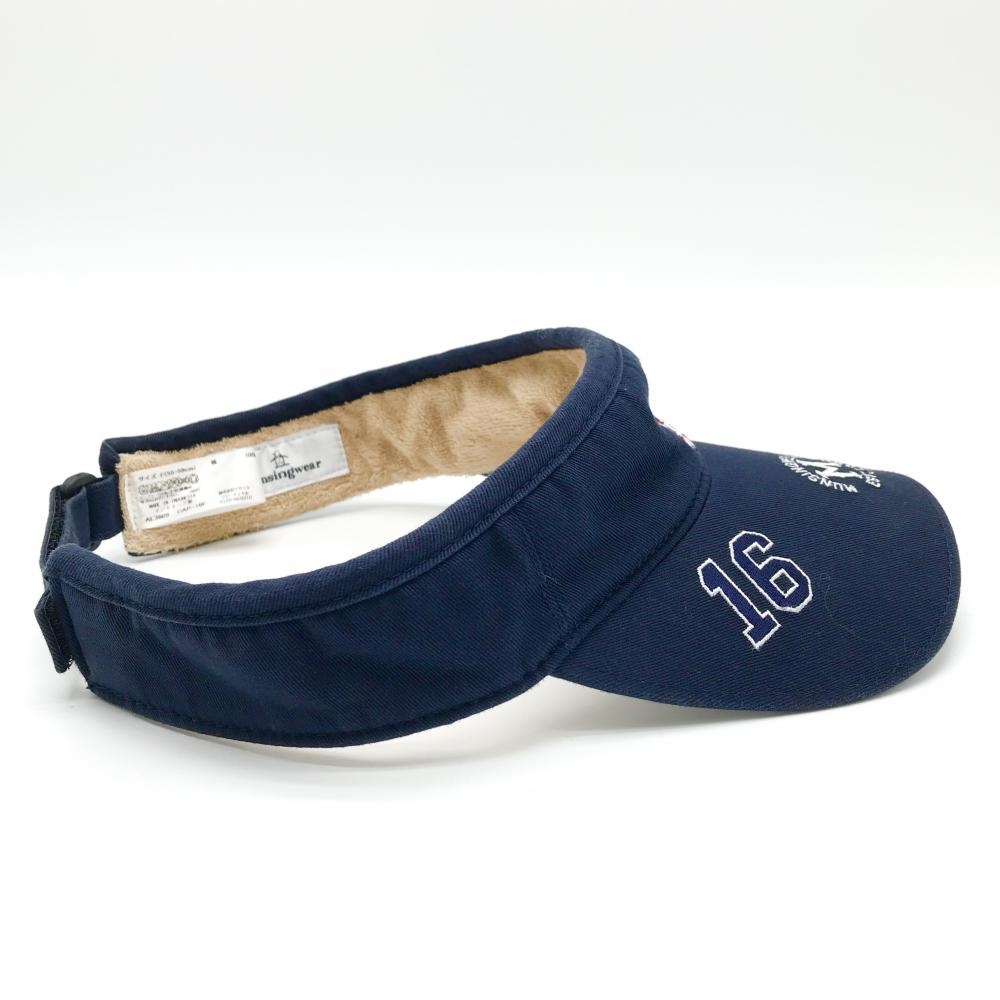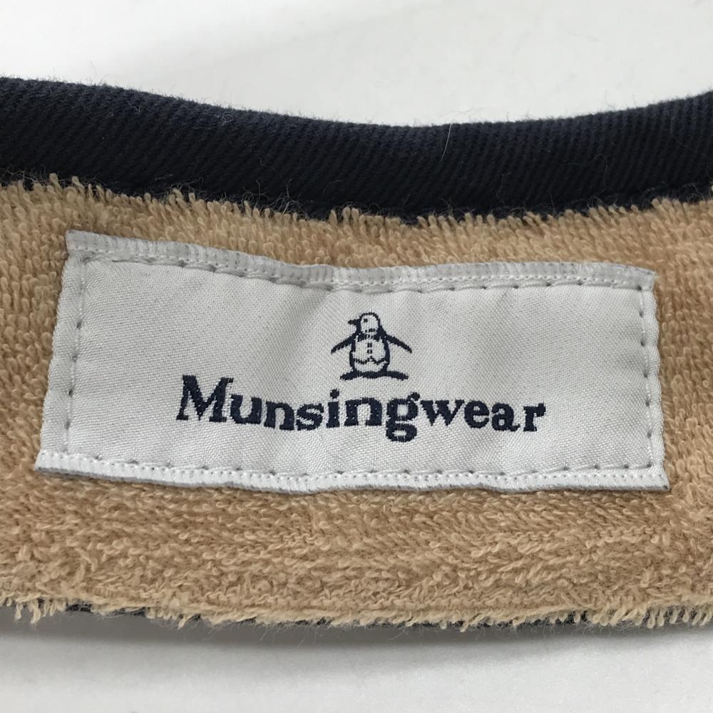 【美品】マンシングウェア サンバイザー ネイビー ロゴ刺しゅう 内側パイル地 F(55-59cm) ゴルフウェア Munsingwear