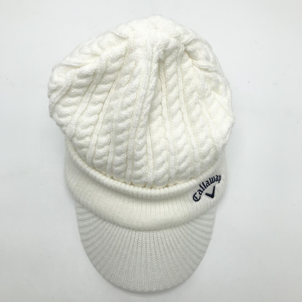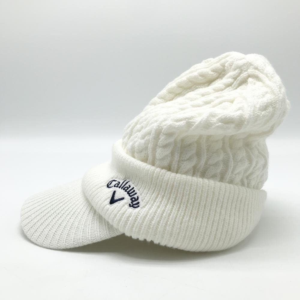 【超美品】キャロウェイ つば付ニット帽 白 ケーブル編み 裏起毛 FR ゴルフウェア 2023年モデル Callaway