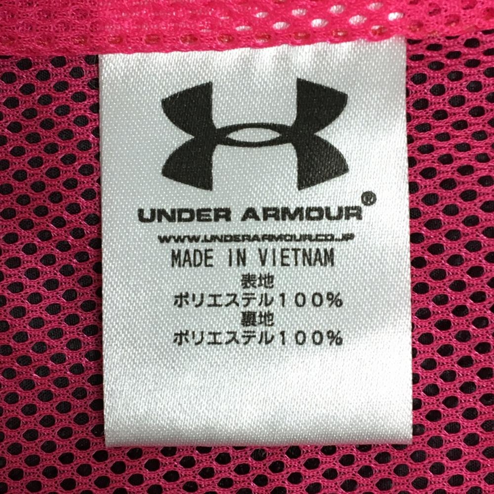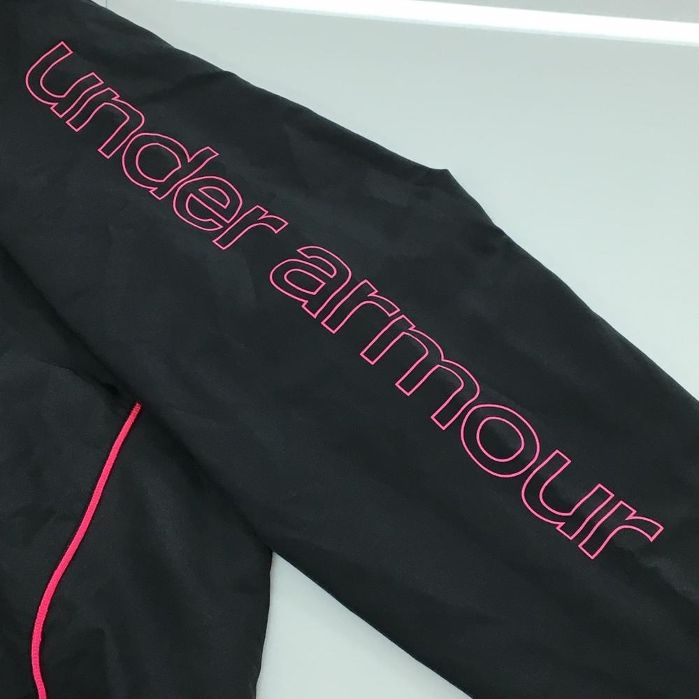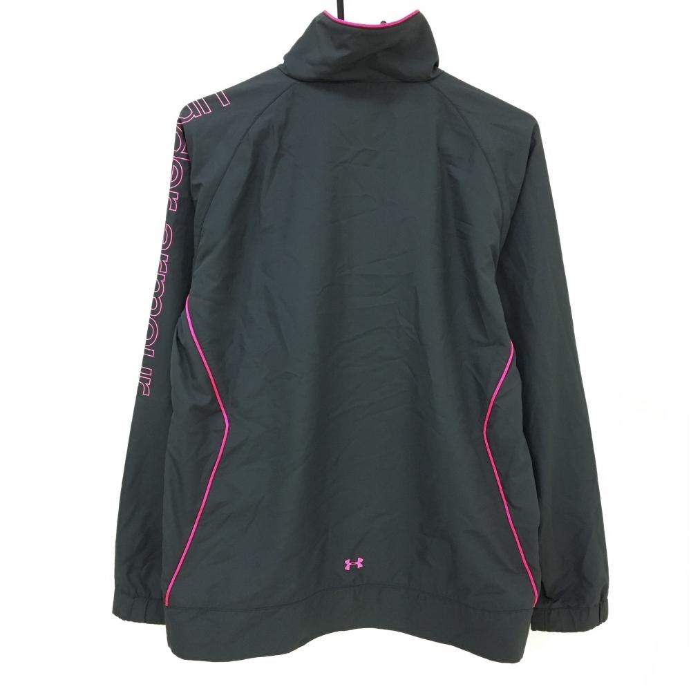 【超美品】アンダーアーマー ジャケット ダークグレー×蛍光ピンク 袖ロゴ 裏地メッシュ レディース XL ゴルフウェア UNDER ARMOUR